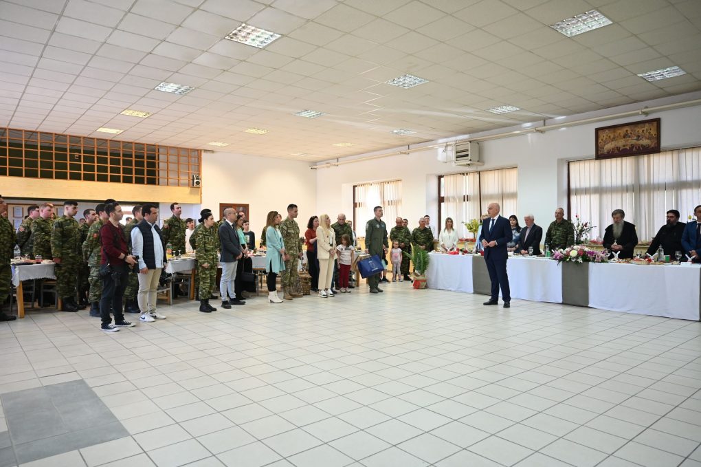 Ολοκληρώνοντας την επίσκεψή του, ο Υπουργός Άμυνας επισκέφθηκε το 221 Τάγμα Εθνοφυλακής (ΤΕ) Μυτιλήνης, όπου παρέστη στο πασχαλινό γεύμα και αντάλλαξε ευχές για το Πάσχα με τα στελέχη και τους οπλίτες θητείας.