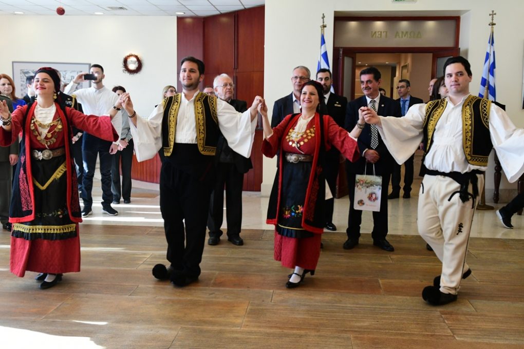 Τα Χριστουγεννιάτικα κάλαντα παιάνισε σήμερα Δευτέρα 24 Δεκεμβρίου 2018, στον προαύλιο χώρο του Υπουργείου Εθνικής Άμυνας, το Μικτό Τμήμα ΣΜΣ (Στρατιωτικής Μουσικής), παρουσία του Αναπληρωτή Υπουργού Εθνικής Άμυνας Παναγιώτη Ρήγα,του Αρχηγού ΓΕΕΘΑ Ναυάρχου Ευάγγελου Αποστολάκη ΠΝ, των Αρχηγών των Γενικών Επιτελείων των τριών Κλάδων και της Ειδικής Γραμματέως του ΥΠΕΘΑ Καλλιόπης Παπαλεωνίδα. Ακολούθως η Μικτή Χορωδία των Ενόπλων Δυνάμεων έψαλε τα κάλαντα στο γραφείο του ΑΝΥΕΘΑ, ενώ το Χορωδιακό- Μουσικοχορευτικό Τμήμα της Πανηπειρωτικής Συνομοσπονδίας Ελλάδος παρουσίασε ηπειρώτικους χορούς και τραγούδια.