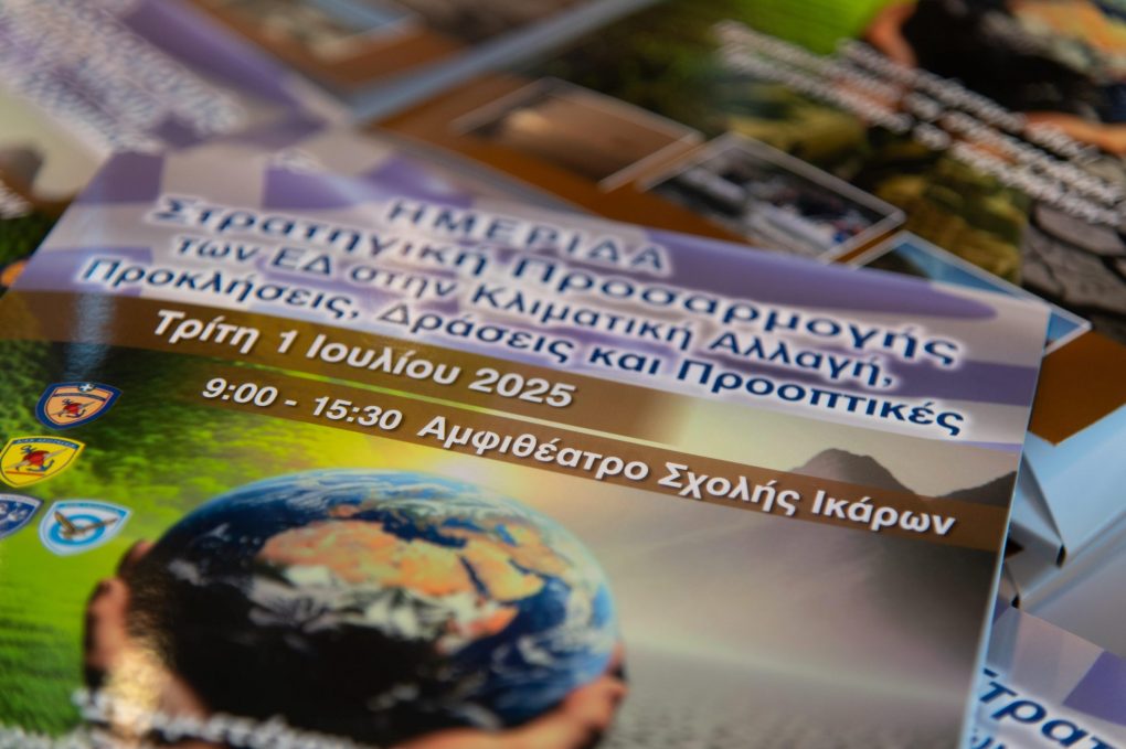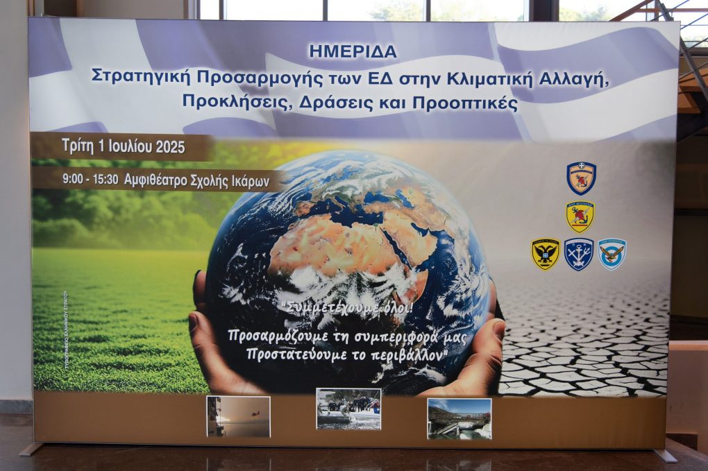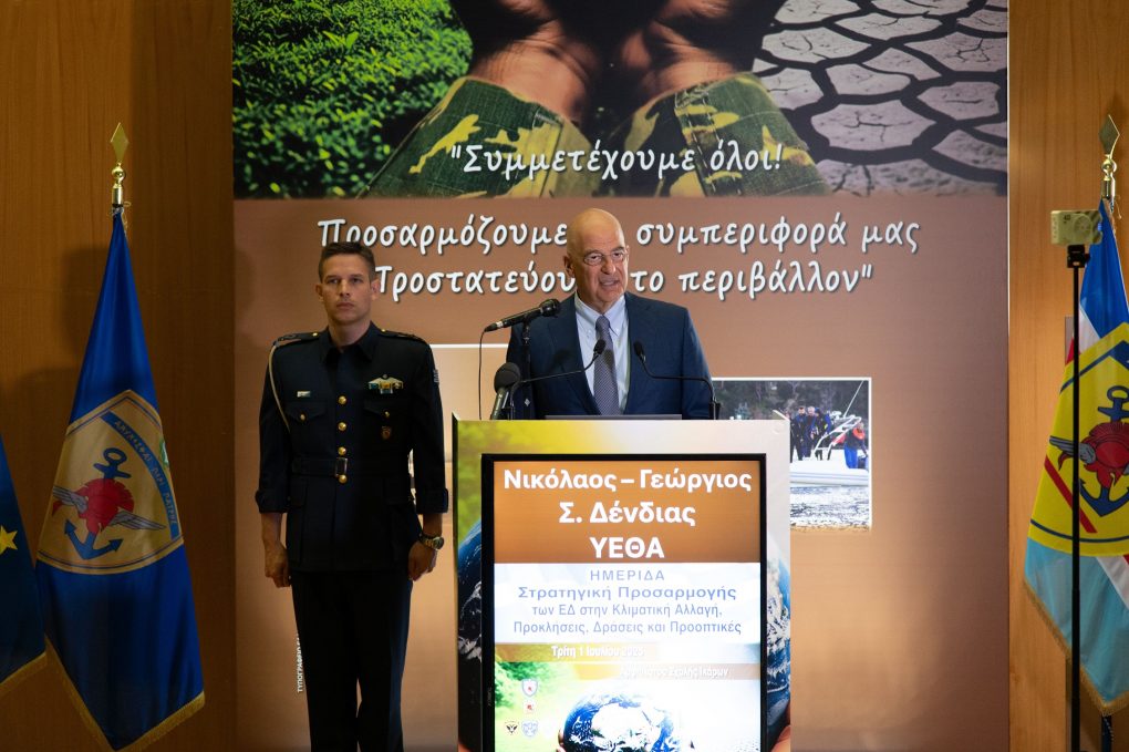 Ο Υπουργός Εθνικής Άμυνας, Νίκος Δένδιας, κήρυξε σήμερα, Τρίτη 1η Ιουλίου 2025, την έναρξη της Ημερίδας που διοργανώνεται από το ΓΕΕΘΑ στο Αμφιθέατρο της Σχολής Ικάρων, με θέμα «Στρατηγική Προσαρμογής των Ενόπλων Δυνάμεων στην Κλιματική Αλλαγή – Προκλήσεις – Δράσεις και Προοπτικές».