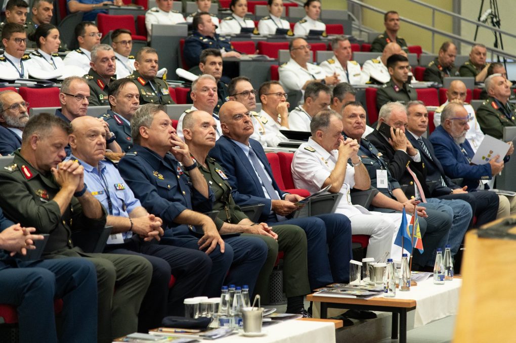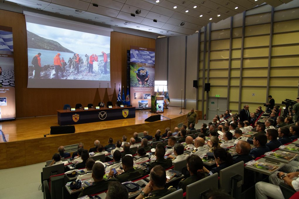 Είχα την ευκαιρία και τον λίγο χρόνο να δώσω μια ματιά στο πρόγραμμα των ομιλιών και των τοποθετήσεων και των συζητήσεων στο πλαίσιο της Ημερίδας και θα ήθελα να σας συγχαρώ ειλικρινά γι’ αυτό. Γιατί αποδεικνύει ότι είμαστε-θα μου επιτρέψετε το είμαστε, για την ευρύτερη οικογένεια των Ενόπλων Δυνάμεων – ευαίσθητοι αποδέκτες των μηνυμάτων των καιρών. Όχι μόνο στο στενό πλαίσιο της εκπλήρωσης του βασικού καθήκοντος, του συνταγματικού καθήκοντος των Ενόπλων Δυνάμεων, δηλαδή την προστασία της ανεξαρτησίας, της κυριαρχίας και των κυριαρχικών δικαιωμάτων της Πατρίδας μας, της αξιοπρέπειας και της ζωής των Ελλήνων πολιτών, αλλά και των ευρύτερων αναγκών οι οποίες βρίσκονται μπροστά μας.