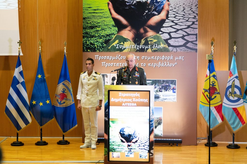 Από τη μια πλευρά, είναι οι καταναλωτές περιβαλλοντικών πόρων, και υπό αυτή την έννοια πρέπει να είναι και συμμέτοχοι στην προστασία του περιβάλλοντος έχοντας αντιληφθεί τις ριζικές αλλαγές που φέρνει η Κλιματική Αλλαγή. Οι Γάλλοι το λένε «réchauffement climatique», ακούγεται στα αυτιά μου παρότι δεν μετέχω τόσο της γαλλικής κουλτούρας, ως κάτι το ιδιαίτερα απειλητικό. Οι Ένοπλες Δυνάμεις λοιπόν το προσλαμβάνουν και επιχειρούν ως ενσυνείδητος καταναλωτής πόρων που ανήκουν στην κοινωνία και στην ανθρωπότητα να ελαττώσουν κατά το δυνατόν την κατανάλωση αυτών των πόρων και να προστατεύσουν το περιβάλλον με ολόκληρη σειρά μέτρων και στρατηγικών, από τη μείωση του ενεργειακού αποτυπώματος, από την προστασία των κτηρίων, από τον διαφορετικό σχεδιασμό των ασκήσεων κ.λπ.