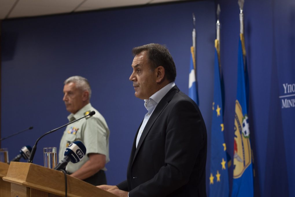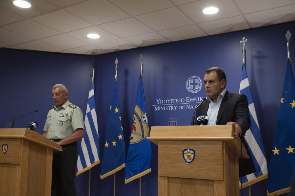 Ο Υπουργός Εθνικής Αμύνης κ. Νικόλαος Παναγιωτόπουλος, μετά τη σύσκεψη που πραγματοποιήθηκε σήμερα, Πέμπτη 5 Αυγούστου 2021, στο Μέγαρο Μαξίμου υπό τον Πρωθυπουργό κ. Κυριάκο Μητσοτάκη για την περαιτέρω ενεργό συνδρομή των Ενόπλων Δυνάμεων στην πρόληψη και τη διαχείριση των πυρκαγιών, προέβη σε ανακοινώσεις προς τον Τύπο. Αναλυτικότερες πληροφορίες για τον επιχειρησιακό σχεδιασμό έδωσε ο Αρχηγός ΓΕΕΘΑ Στρατηγός Κωνσταντίνος Φλώρος, ο οποίος παρέθεσε και στοιχεία για την παροχή Προσωπικού και Μέσων από τις Ένοπλες Δυνάμεις.
