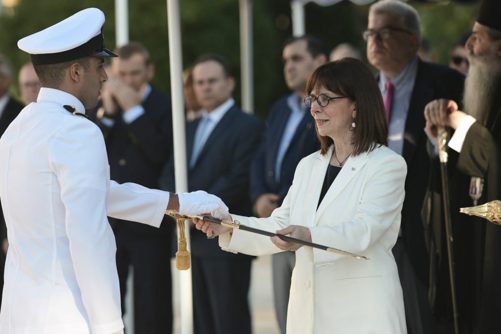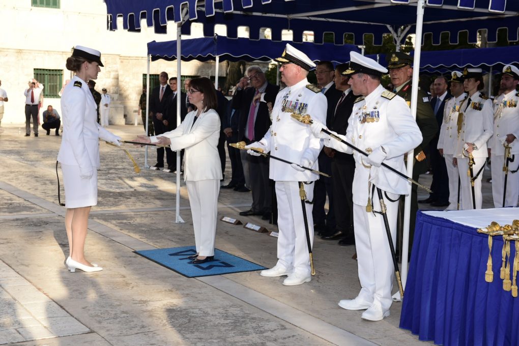 Ο Υπουργός Εθνικής Αμύνης κ. Νικόλαος Παναγιωτόπουλος παρέστη στην τελετή ορκωμοσίας των νέων Σημαιοφόρων του Πολεμικού Ναυτικού, η οποία πραγματοποιήθηκε σήμερα, 2 Ιουλίου 2020, στις εγκαταστάσεις της Σχολής Ναυτικών Δοκίμων στον Πειραιά, με την παρουσία της Προέδρου της Δημοκρατίας κ. Κατερίνας Σακελλαροπούλου, η οποία επέδωσε τα ξίφη στους νέους Αξιωματικούς του Πολεμικού Ναυτικού.