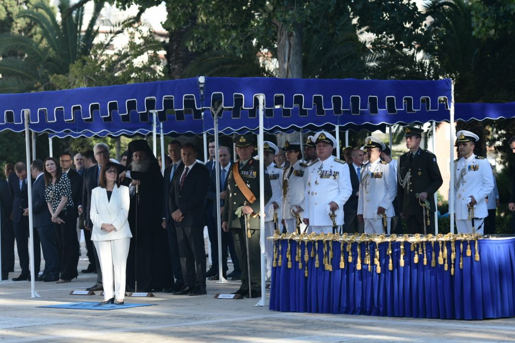 Στην τελετή παραστάθηκαν επίσης, ο Υφυπουργός Εθνικής Αμύνης κ. Αλκιβιάδης Στεφανής, ο Αρχηγός ΓΕΕΘΑ Στρατηγός Κωνσταντίνος Φλώρος, ο Αρχηγός ΓΕΑ Αντιπτέραρχος (Ι) Γεώργιος Μπλιούμης, ο Αρχηγός ΓΕΣ Αντιστράτηγος Χαράλαμπος Λαλούσης και ο Αρχηγός ΓΕΝ Αντιναύαρχος Στυλιανός Πετράκης ΠΝ, ενώ χοροστάτησε ο Σεβασμιότατος Μητροπολίτης Πειραιώς κ.κ. Σεραφείμ.