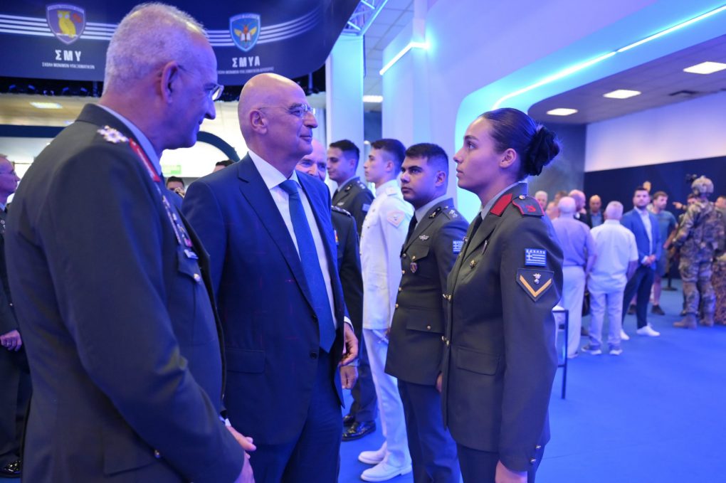 Ο Υπουργός Εθνικής Άμυνας Νίκος Δένδιας εγκαινίασε σήμερα, Σάββατο 6 Σεπτεμβρίου 2025, το Περίπτερο του Υπουργείου Εθνικής Άμυνας στην 89η Διεθνή Έκθεση Θεσσαλονίκης (ΔΕΘ), συνοδευόμενος από τον Υφυπουργό Εθνικής Άμυνας Θανάση Δαβάκη, τον Αρχηγό ΓΕΕΘΑ Στρατηγό Δημήτριο Χούπη, τον Γενικό Γραμματέα του Υπουργείου Εθνικής Άμυνας Αντώνιο Οικονόμου, τον Αρχηγό ΓΕΣ Αντιστράτηγο Γεώργιο Κωστίδη, τον Αρχηγό ΓΕΝ Αντιναύαρχο Δημήτριο-Ελευθέριο Κατάρα ΠΝ και τον Αρχηγό ΓΕΑ Αντιπτέραρχο (Ι) Δημοσθένη Γρηγοριάδη.