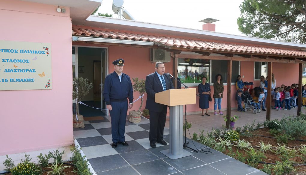 Ο Υπουργός Εθνικής Άμυνας Πάνος Καμμένος, στο χαιρετισμό που απηύθυνε στα εγκαίνια του παιδικού σταθμού, είπε μεταξύ άλλων τα εξής: