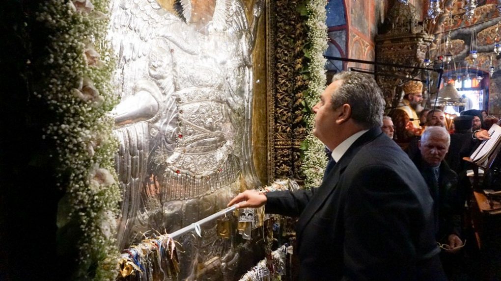 Ο Υπουργός Εθνικής Άμυνας Πάνος Καμμένος, συνοδευόμενος από τον Αρχηγό ΓΕΕΘΑ Ναύαρχο Ευάγγελο Αποστολάκη ΠΝ, σήμερα 8 Νοεμβρίου 2018, ημέρα της εορτής του Αρχαγγέλου Μιχαήλ, Προστάτη της Πολεμικής Αεροπορίας, επισκέφθηκε την Ιερά Μονή του Αρχαγγέλου Μιχαήλ του Πανορμίτη στη Σύμη για τον εορτασμό και την απόδοση τιμών στον Αρχάγγελο Μιχαήλ.