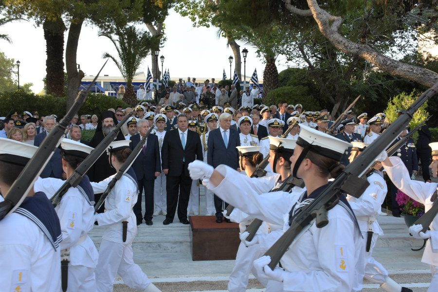 Παρουσία της ΑΕ, Προέδρου της Ελληνικής Δημοκρατίας, Προκόπη Παυλόπουλου, πραγματοποιήθηκε η τελετή ορκωμοσίας των νέων Σημαιοφόρων τάξεως 2018 στη Σχολή Ναυτικών Δοκίμων.