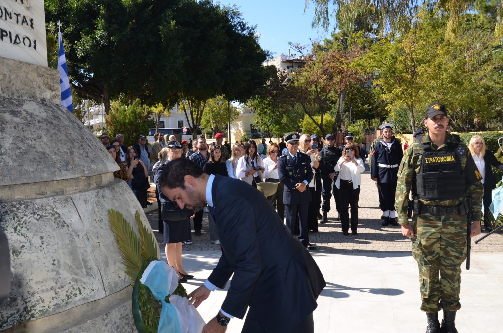 Ο Υφυπουργός Εθνικής Άμυνας, κ. Γιάννης Κεφαλογιάννης, παρέστη σήμερα, Δευτέρα 28 Οκτωβρίου 2024, στις εκδηλώσεις εορτασμού της Εθνικής Επετείου της 28ης Οκτωβρίου στα Χανιά, εκπροσωπώντας τον Πρόεδρο της Ελληνικής Κυβέρνησης κ. Κυριάκο Μητσοτάκη.