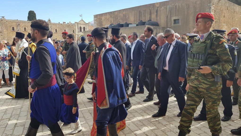 Ο Υφυπουργός Εθνικής Άμυνας κ. Ιωάννης Κεφαλογιάννης παρέστη σήμερα, ως εκπρόσωπος του Προέδρου της Ελληνικής Κυβέρνησης, στις εκδηλώσεις για τον επίσημο εορτασμό της 157ης Επετείου Ολοκαυτώματος της Ιεράς Μονής Αρκαδίου, που πραγματοποιήθηκε στην Ι.Μ. Αρκαδίου, στο Ρέθυμνο, και στη δοξολογία χοροστατούντος του Σεβασμιωτάτου Μητροπολίτου Ρεθύμνης και Αυλοποτάμου κ.Προδρόμου.