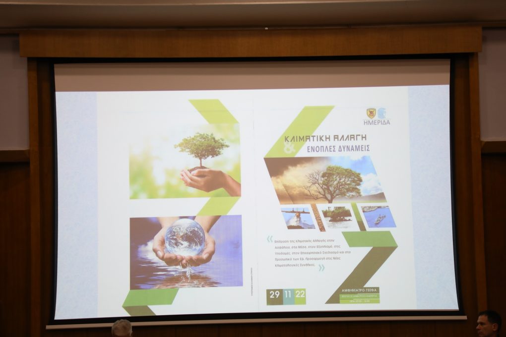 «Είναι ιδιαίτερη η τιμή και η χαρά μου, να παρευρίσκομαι στη σημερινή ημερίδα, μια σημαντική δράση για την Κλιματική αλλαγή, το περιβάλλον και την προσαρμογή των Ενόπλων Δυνάμεων στις νέες συνθήκες, η οποία οργανώνεται για πρώτη φορά στο Υπουργείο Εθνικής Άμυνας με τη συμμετοχή του Εθνικού και Καποδιστριακού Πανεπιστημίου. Μια δράση επίκαιρη και συνάμα αναγκαία, η οποία ξεκίνησε με πρωτοβουλία του ΓΕΕΘΑ και υλοποιείται, ακολουθώντας τις αρχές της συνέχειας και της συνέπειας, με τις οποίες πορευόμαστε.