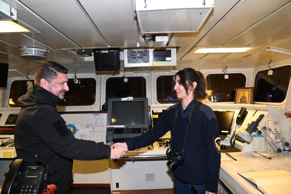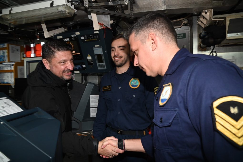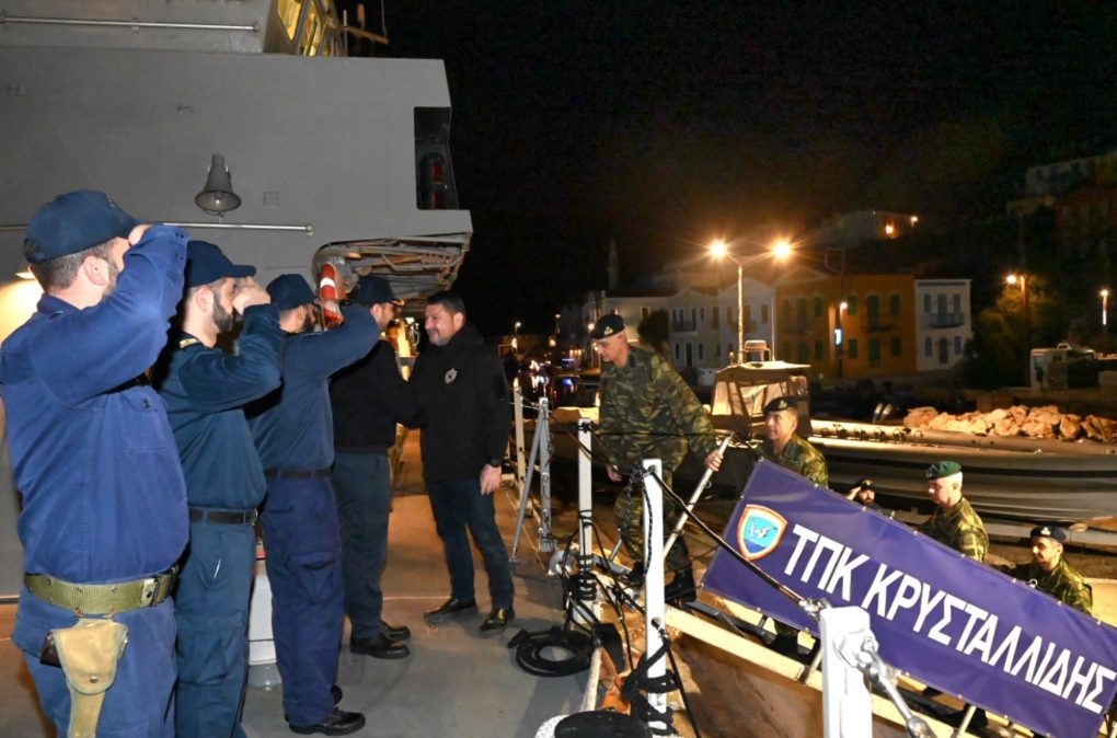 Επίσης, επισκέφθηκε το ΤΠΚ ΚΡΥΣΤΑΛΛΙΔΗΣ, που βρίσκεται σε αποστολή στην ευρύτερη θαλάσσια περιοχή του Ανατολικού Αιγαίου, ενώ κατά την παραμονή του στη Ρω, κατέθεσε στεφάνι στο μνημείο της «Κυράς της Ρω» (Δέσποινα Αχλαδιώτη), ως ένδειξη τιμής για την προσφορά της στην πατρίδα.