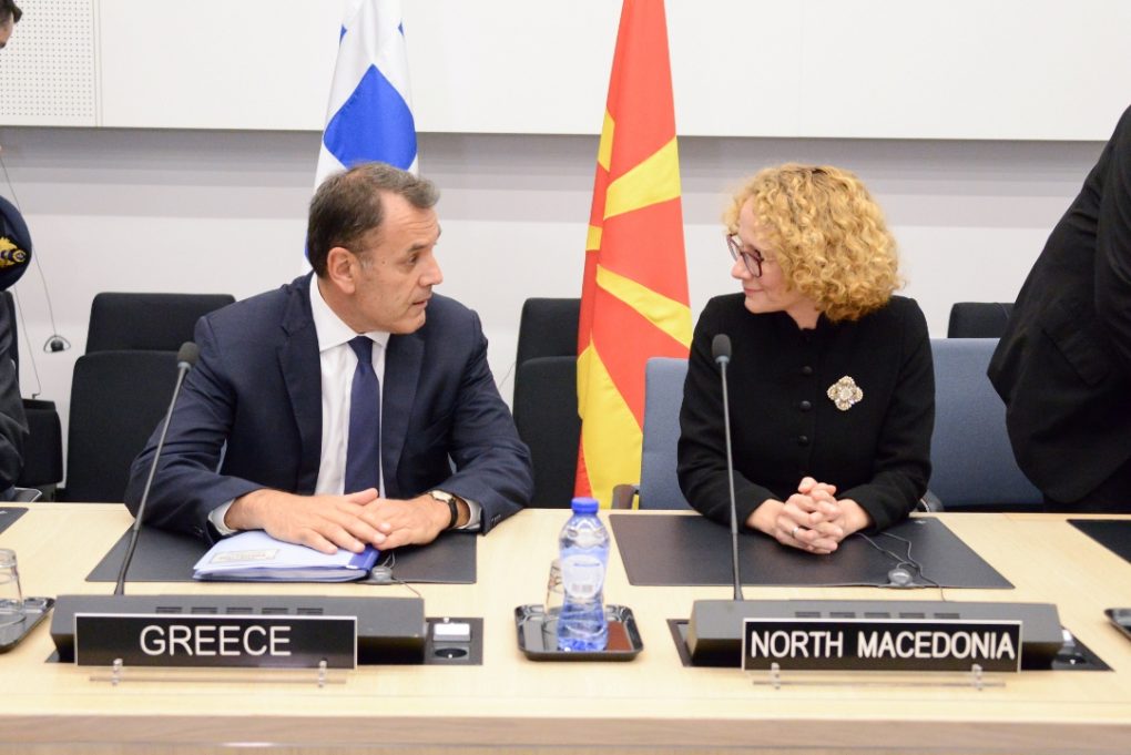 Τέλος, στη συνάντηση με την ομόλογό μου από τη Δημοκρατία της Βόρειας Μακεδονίας Ραντμίλα Σεκερίνσκα συζητήσαμε θέματα συνεργασίας σε διμερές επίπεδο στο πλαίσιο του ΝΑΤΟ, καθώς και για τις προκλήσεις ασφαλείας και σταθερότητας στην Ανατολική Μεσόγειο».