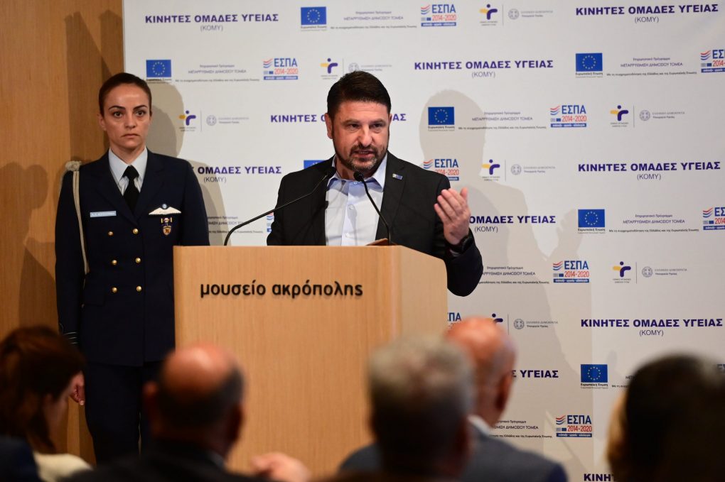 Ο Υφυπουργός Εθνικής Άμυνας κ. Νικόλαος Χαρδαλιάς, παρέστη σήμερα, Πέμπτη 30 Ιουνίου 2022, στην εκδήλωση που πραγματοποίησε ο Εθνικός Οργανισμός Δημόσιας Υγείας (ΕΟΔΥ), για τη συμπλήρωση δύο χρόνων δράσεων των Κινητών Ομάδων Υγείας (ΚΟΜΥ), στο πλαίσιο της Πράξης «Δημιουργία δικτύου νοσηλευτών για τη λήψη δειγμάτων βιολογικού υλικού και νοσηλευτική βοήθεια στα ύποπτα κρούσματα κορωνοϊού κατ’ οίκον», στο χώρο του Αμφιθεάτρου του Μουσείου της Ακρόπολης.