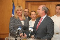 Ε. ΜΕΪΜΑΡΑΚΗΣ: «Με πολύ χαρά υποδεχθήκαμε σήμερα την κυρία Παπανδρέου, τη χήρα του αείμνηστου Ανδρέα Παπανδρέου. Η κυρία Παπανδρέου είχε την καλοσύνη να μας προσφέρει την συλλογή των όπλων του Ανδρέα Παπανδρέου, που όπως γνωρίζετε διετέλεσε και Υπουργός Εθνικής Άμυνας, για να εκτεθεί στο Πολεμικό Μουσείο. Μία συλλογή, που όπως μου εξήγησε, προέρχεται και από πολλά δώρα που έχουνε γίνει από μεγάλους ηγέτες, τα οποία κοσμούν σήμερα την συλλογή της κυρίας Παπανδρέου. Είναι μία χειρονομία που δείχνει πραγματικά ότι σεβόμαστε τον εθνικό μας πλούτο. Μια συλλογή που θα μπορούν να βλέπουν όλοι οι πολίτες, καθώς θα εκτεθεί στο Πολεμικό Μουσείο. Για άλλη μια φορά θέλω να την ευχαριστήσω για αυτήν της τη χειρονομία».