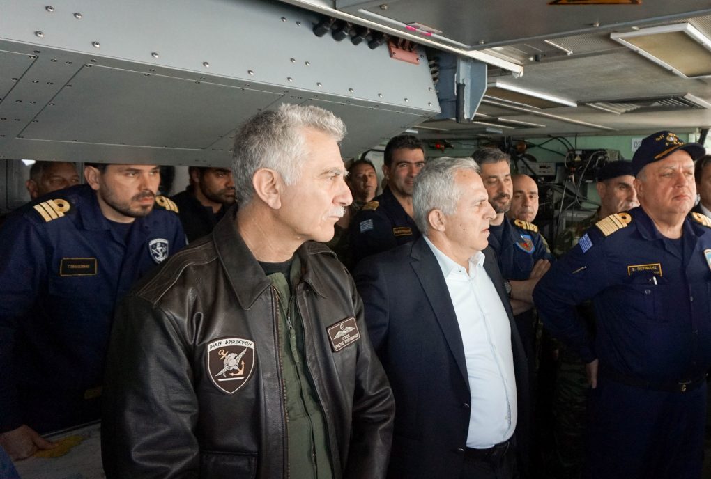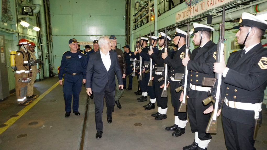 Τον Υπουργό Εθνικής Άμυνας συνόδευσαν ο Αρχηγός ΓΕΕΘΑ, Πτέραρχος Χρήστος Χριστοδούλου και ο Αρχηγός ΓΕΝ, Αντιναύαρχος Νικόλαος Τσούνης ΠΝ.