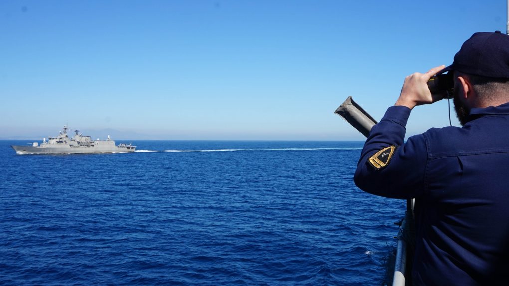 Ο Υπουργός Εθνικής Άμυνας Ευάγγελος Αποστολάκης, τη Δευτέρα 18 Μαρτίου 2019, παρακολούθησε από τη Φρεγάτα ΨΑΡΑ, δραστηριότητες επιχειρησιακής εκπαίδευσης του Πολεμικού Ναυτικού, στην ευρύτερη περιοχή Σαρωνικού κόλπου.