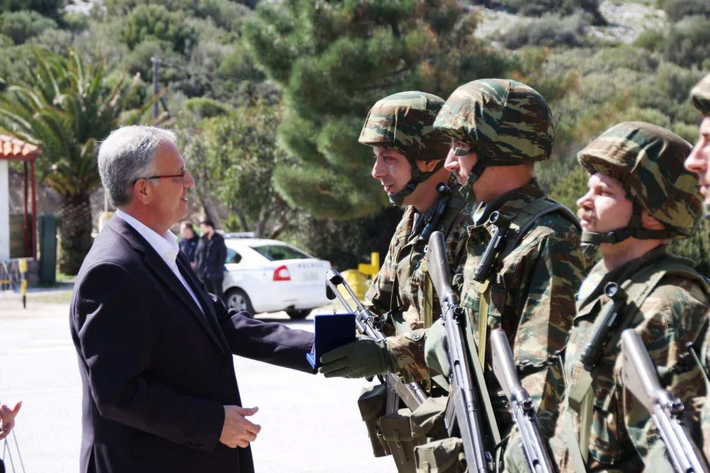 Ο Αναπληρωτής Υπουργός Εθνικής Άμυνας Παναγιώτης Ρήγας, συνοδευόμενος από τον Αρχηγό ΓΕΣ Αντιστράτηγο Γεώργιο Καμπά, παρέστη σήμερα Παρασκευή 15 Μαρτίου 2019, στην τελετή παραλαβής της Διοίκησης της 98 ΑΔΤΕ «Αρχιπέλαγος» από τον Υποστράτηγο Χρήστο Πουλιανίτη. Η τελετή έλαβε χώρα στην έδρα της 98 ΑΔΤΕ στη Μυτιλήνη. Στην συνέχεια ο ΑΝΥΕΘΑ και ο Α/ΓΕΣ επισκέφθηκαν το Επιτηρητικό Φυλάκιο «ΠΡΟΒΟΣΚΙΔΑ» και το 265 Μ/Κ Τάγμα Εθνοφυλακής.