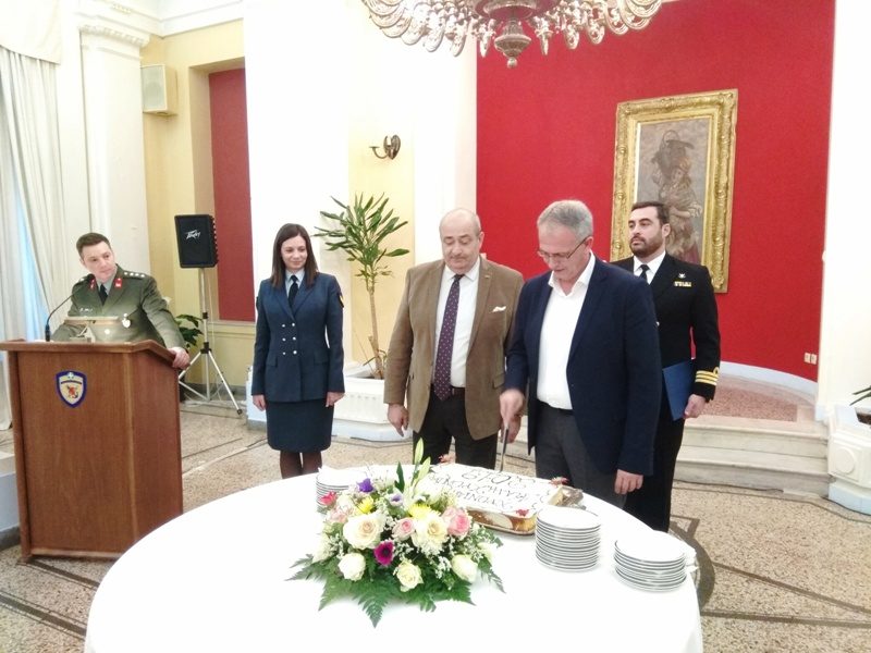 Ο Αναπληρωτής Υπουργός Εθνικής Άμυνας Παναγιώτης Ρήγας, παρέστη σήμερα Παρασκευή 08 Φεβρουαρίου 2019, στην κοπή της πίτας για την Eγχώρια Aμυντική Bιομηχανία, που οργάνωσε η Γενική Διεύθυνση Αμυντικών Εξοπλισμών και Επενδύσεων (ΓΔΑΕΕ) του ΥΠΕΘΑ, στην Λέσχη Αξιωματικών Ενόπλων Δυνάμεων (ΛΑΕΔ). Στην τελετή παρέστησαν οι Πρόεδροι και τα ΔΣ των δύο συνδέσμων της Αμυντικής Βιομηχανίας (ΕΛΕΑΑ και ΣΕΚΠΥ) και μεγάλος αριθμός μελών τους.