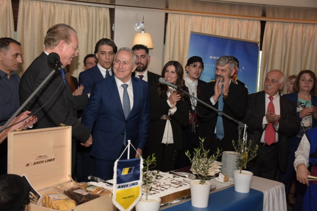 Ο Υπουργός Εθνικής Άμυνας Ευάγγελος Αποστολάκης, το Σάββατο 19 και την Κυριακή 20 Ιανουαρίου 2019, παρέστη σε εκδηλώσεις κοπής πρωτοχρονιάτικης πίτας, του Συλλόγου Αποδήμων Ρεθυμνίων Αττικής «Το Αρκάδι», της Ένωσης Αποστράτων Αξιωματικών Ναυτικού και της Παγκρητίου Ενώσεως, οι οποίες πραγματοποιήθηκαν στην Αθήνα και στον Πειραιά.