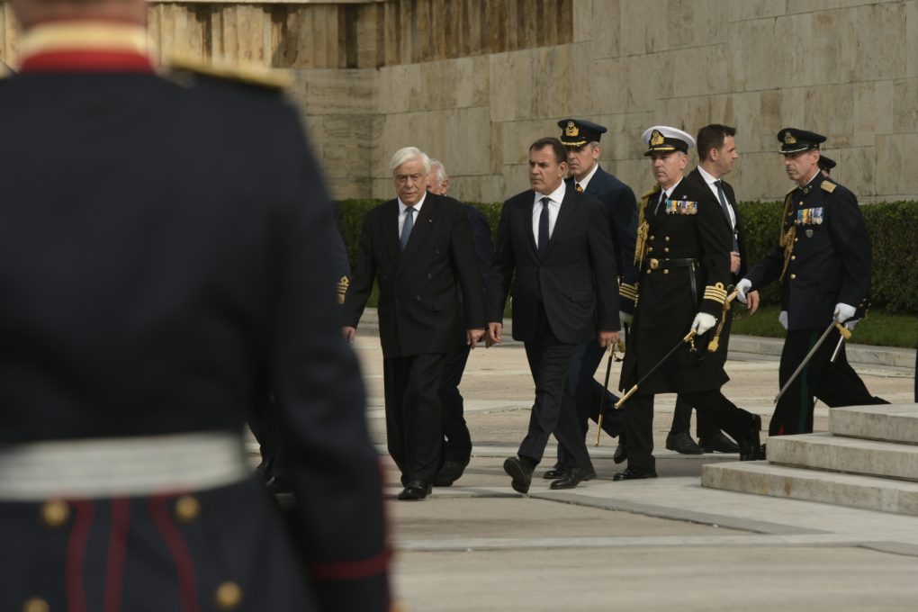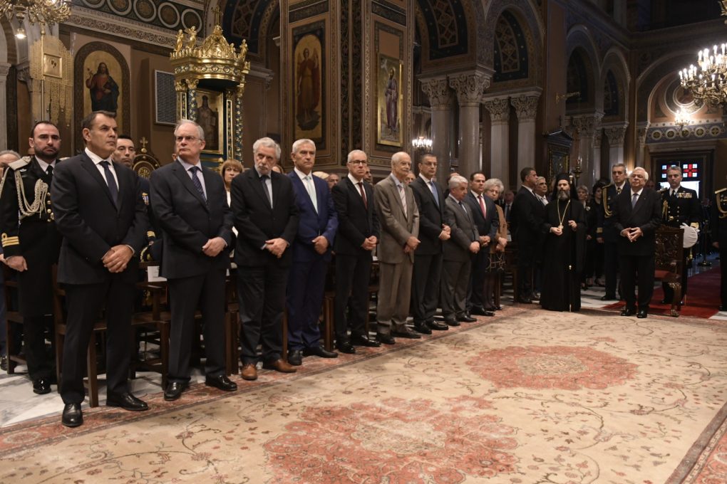 O Υπουργός Εθνικής Αμύνης κ. Νικόλαος Παναγιωτόπουλος παρέστη σήμερα στη δοξολογία που τελέστηκε στον Καθεδρικό Ναό Αθηνών, στο πλαίσιο του εορτασμού της Ημέρας των Ενόπλων Δυνάμεων, παρουσία του Προέδρου της Δημοκρατίας κ. Προκοπίου Παυλόπουλου. Στη συνέχεια, κατέθεσε στεφάνι στο Μνημείο του Αγνώστου Στρατιώτη, εκπροσωπώντας την Κυβέρνηση και τον Πρωθυπουργό κ. Κυριάκο Μητσοτάκη.