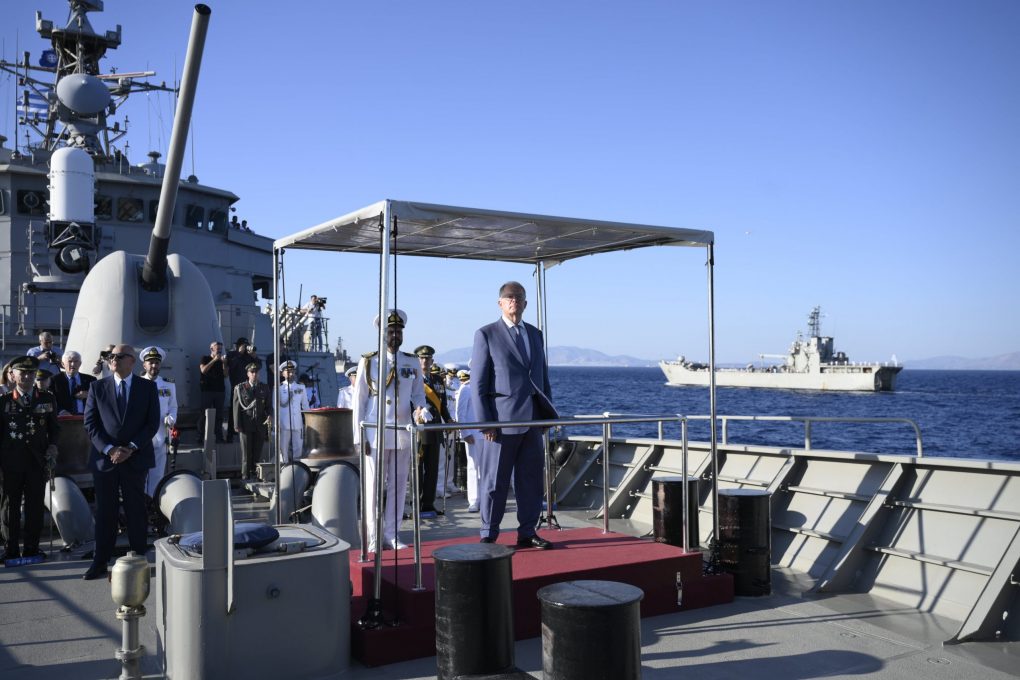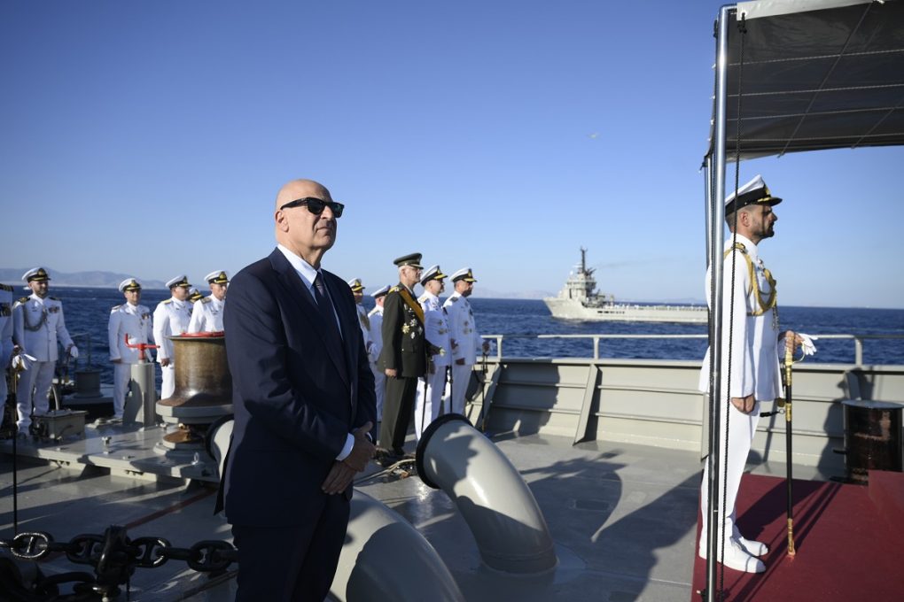 Ο Υπουργός Εθνικής Άμυνας Νίκος Δένδιας, παρέστη χθες, Δευτέρα 30 Ιουνίου 2025, ως εκπρόσωπος του Προέδρου της Κυβέρνησης, στην Επιθεώρηση του Στόλου από τον Πρόεδρο της Δημοκρατίας, Κωνσταντίνο Τασούλα, τον οποίο υποδέχθηκε στην Ακτή Μιαούλη του Λιμένος Πειραιώς και συνόδευσε εν πλω, επί της φρεγάτας «ΣΠΕΤΣΑΙ», στον Σαρωνικό Κόλπο.