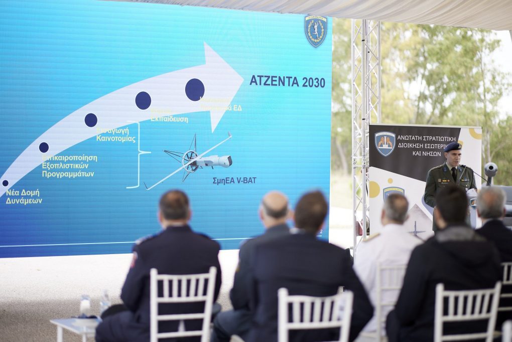 «Είναι μεγάλη τιμή για εμένα ως Υπουργός Εθνικής Άμυνας να παρευρίσκομαι στην τελετή ένταξης των Μη Επανδρωμένων Εναέριων Συστημάτων V-BAT στον Ελληνικό Στρατό, στις ελληνικές Ένοπλες Δυνάμεις.