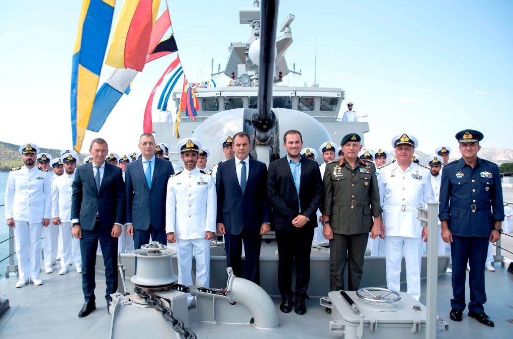 Ο Υπουργός Εθνικής Αμύνης κ. Νικόλαος Παναγιωτόπουλος παρέστη σήμερα, Τρίτη 28 Ιουλίου 2020, στην τελετή ονοματοδοσίας και εντάξεως στο Πολεμικό Ναυτικό της Πυραυλακάτου «ΚΑΡΑΘΑΝΑΣΗΣ», η οποία πραγματοποιήθηκε στις εγκαταστάσεις της Διοικήσεως Ταχέων Σκαφών επί του Ναυτικού Οχυρού Σκαραμαγκά.