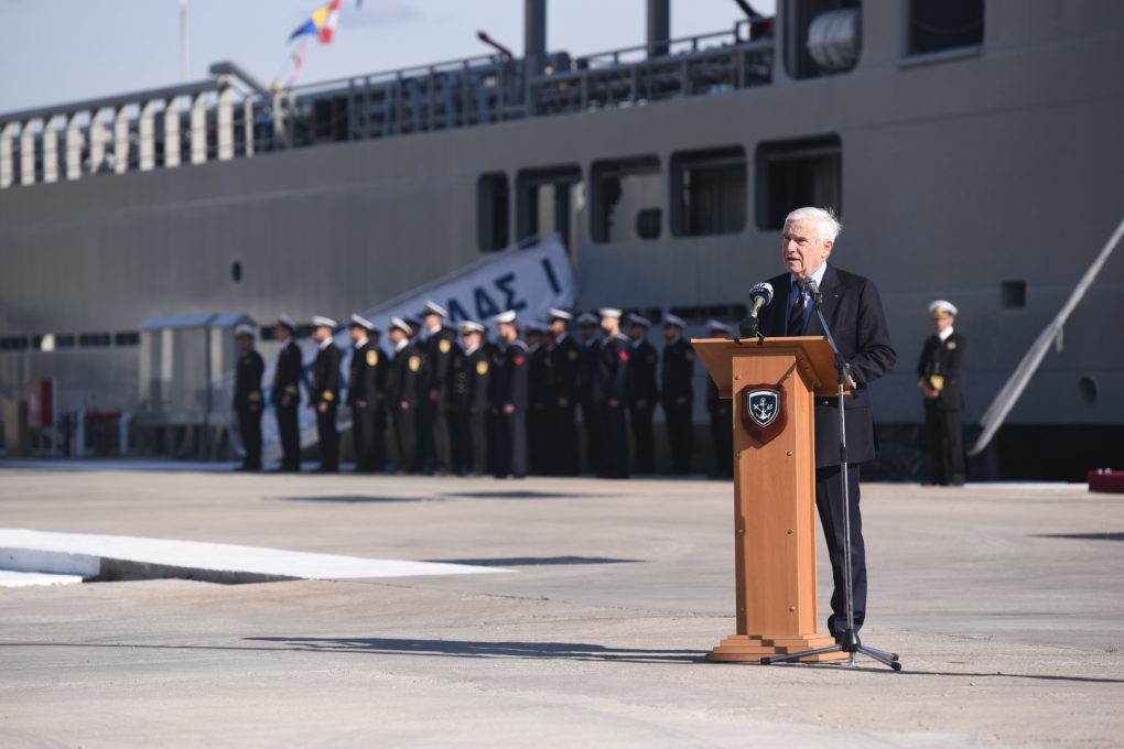 Με ιδιαίτερη ικανοποίηση συνεπώς χαιρετίζω την ένταξη του νέου πλοίου στις Ένοπλες Δυνάμεις.