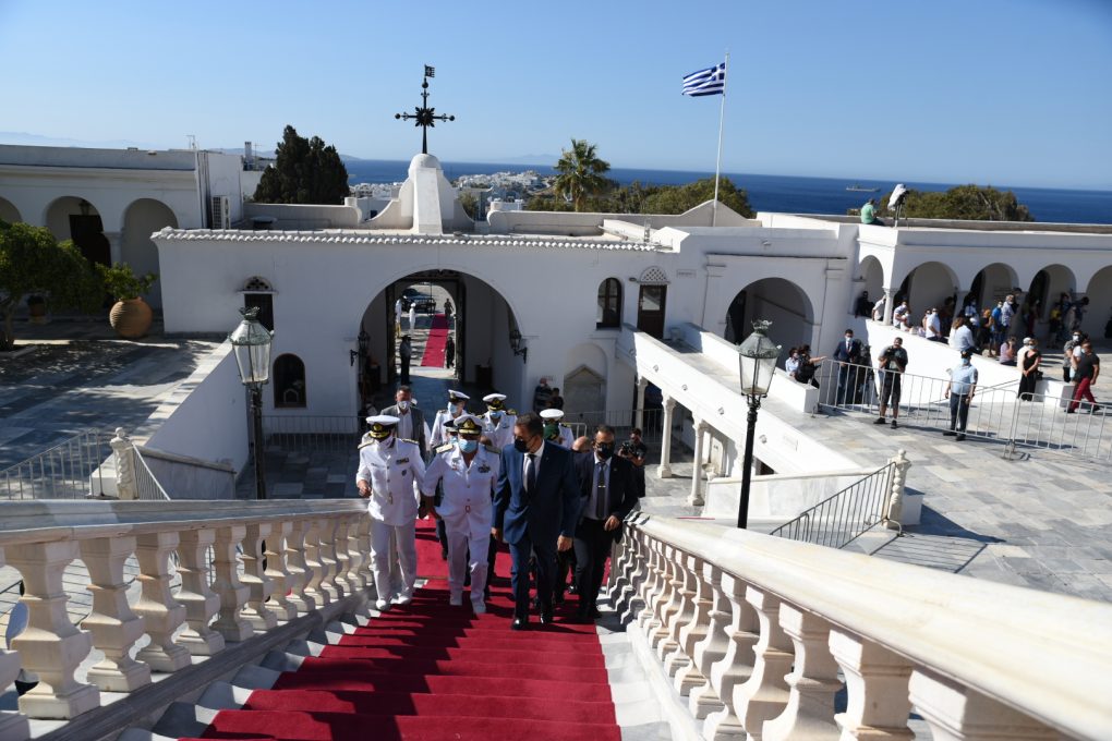 «Από το λιμάνι της Τήνου ανήμερα της μεγάλης θρησκευτικής εορτής της Κοιμήσεως της Θεοτόκου, θα ήθελα να κάνω την ευχή, η Παναγία να προστατεύει, να οδηγεί και να φωτίζει την Ελλάδα και τους Έλληνες, στις δύσκολες στιγμές και πάντοτε. Να σκεπάζει με τη Χάρη της αυτόν εδώ τον τόπο και τις ελληνικές θάλασσες, τις Ένοπλες Δυνάμεις μας, το Πολεμικό Ναυτικό μας που αγωνίζονται αυτή την ώρα για τα Εθνικά μας Δίκαια.
