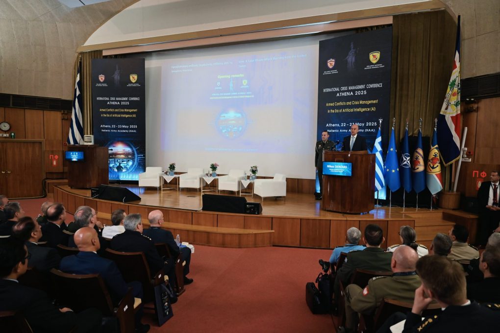 Ο Υπουργός Εθνικής Άμυνας, Νίκος Δένδιας, κήρυξε σήμερα, Πέμπτη 22 Μαΐου 2025, την έναρξη των εργασιών του Διεθνούς Συνεδρίου Χειρισμού Κρίσεων «ΑΘΗΝΑ – 25», με θέμα «Ένοπλες Συρράξεις και Διαχείριση Κρίσεων την Εποχή της Τεχνητής Νοημοσύνης», το οποίο διοργανώνει, υπό την αιγίδα του Υπουργείου Εθνικής Άμυνας, το ΓΕΕΘΑ σε συνεργασία με τη Γενική Διεύθυνση Πολιτικής Εθνικής Άμυνας & Διεθνών Σχέσεων (ΓΔΠΕΑΔΣ), στο αμφιθέατρο της Στρατιωτικής Σχολής Ευελπίδων (ΣΣΕ).