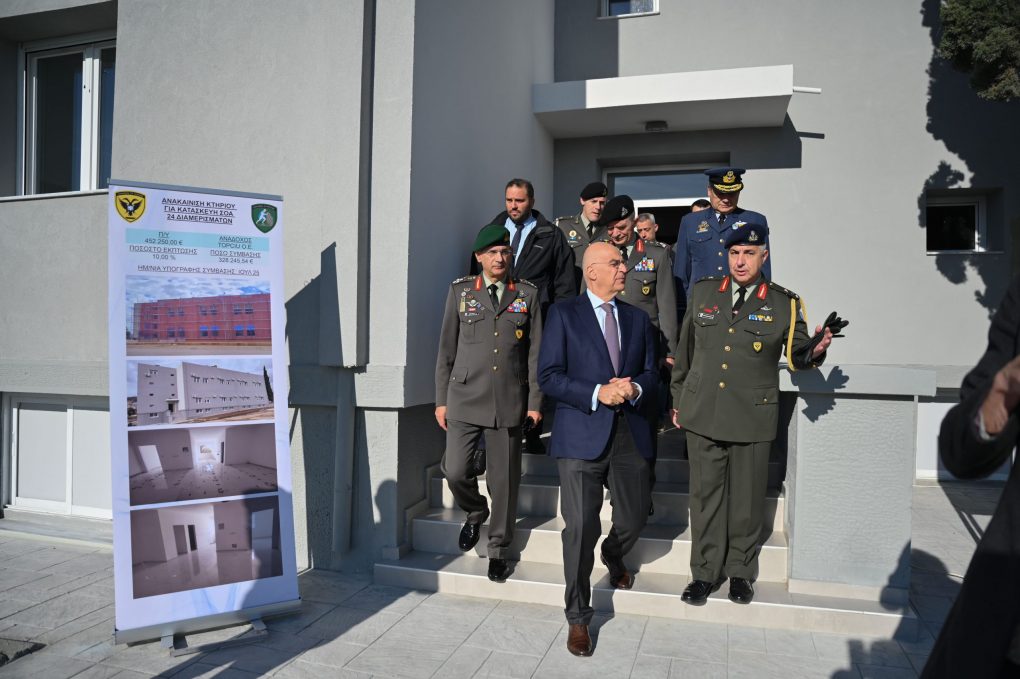 Ο Υπουργός Εθνικής Άμυνας, Νίκος Δένδιας, παρέστη σήμερα, Τετάρτη 10 Δεκεμβρίου 2025, στα εγκαίνια και στην παράδοση σε στελέχη των Ενόπλων Δυνάμεων και των οικογενειών τους, των νέων Στρατιωτικών Οικημάτων στο Στρατόπεδο «Στρατηγού Γεωργίου Καραϊσκάκη», στο Χαϊδάρι.
