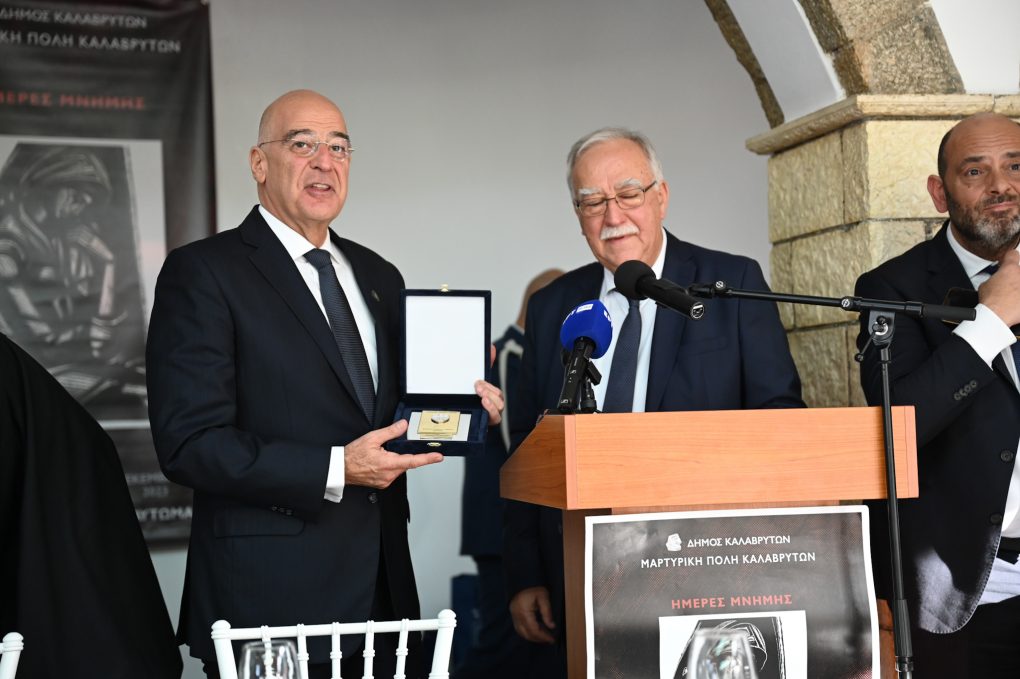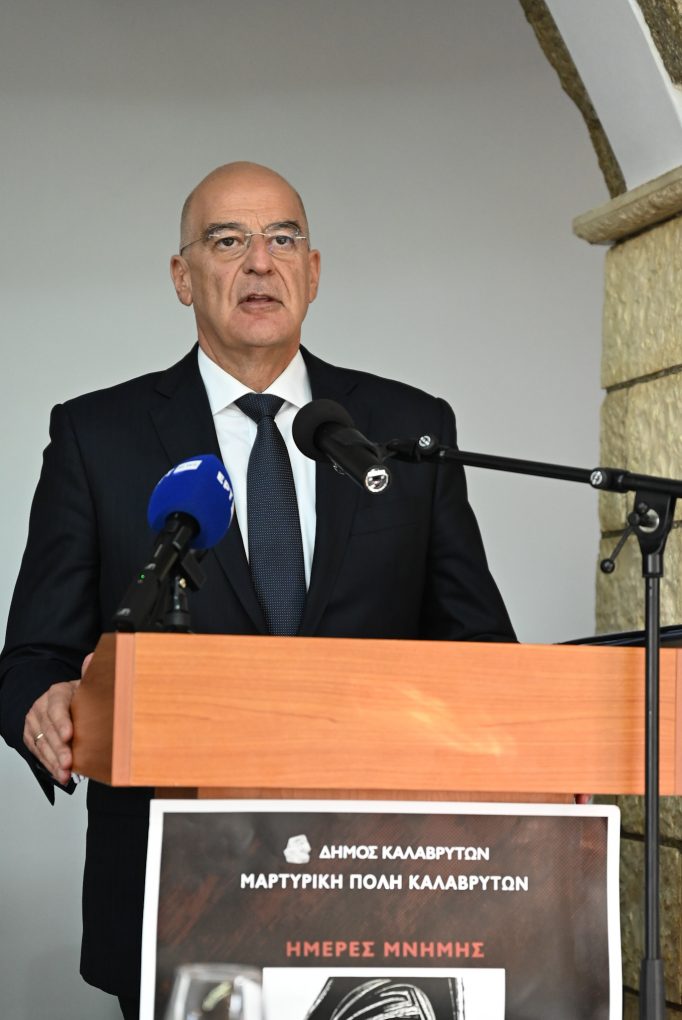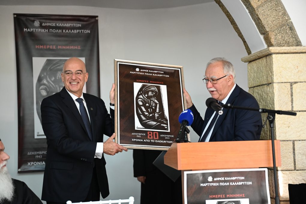 Ο Υπουργός Εθνικής Άμυνας Νίκος Δένδιας παρέστη σήμερα 13 Δεκεμβρίου 2023, ως εκπρόσωπος του Πρωθυπουργού και της Κυβέρνησης, στις εκδηλώσεις του Δήμου Καλαβρύτων για την 80η επέτειο Μνήμης του Ολοκαυτώματος.