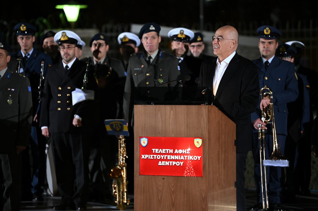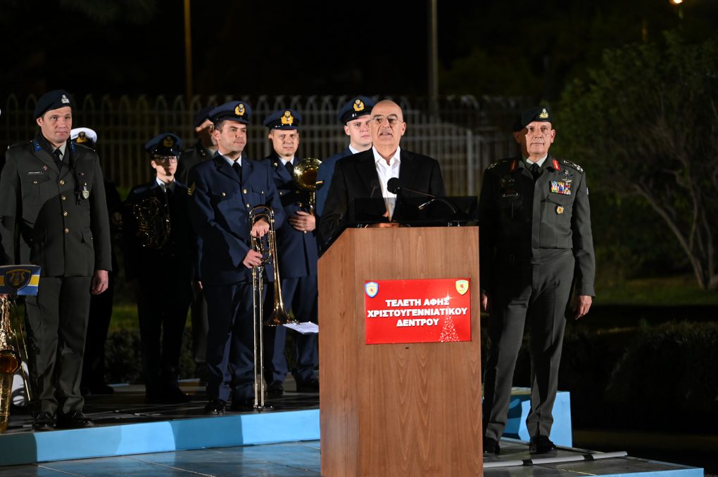 Θα ήθελα και εγώ με τη σειρά μου μετά τον Αρχηγό, να σας καλωσορίσω εδώ στο χώρο του Υπουργείου της Εθνικής μας Άμυνας και να σας πω ότι είναι μία μεγάλη χαρά και με μια μεγάλη τιμή για μένα να είμαι σήμερα εδώ ανάμεσά σας και να μοιραστούμε τη χαρά της φωταγώγησης του Χριστουγεννιάτικου δέντρου.