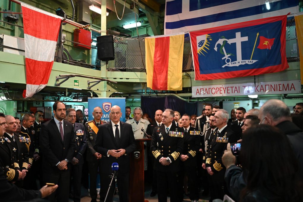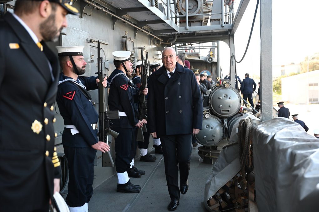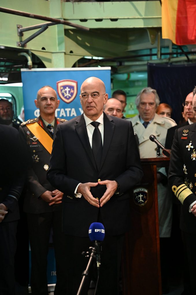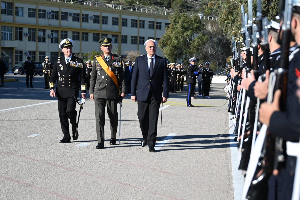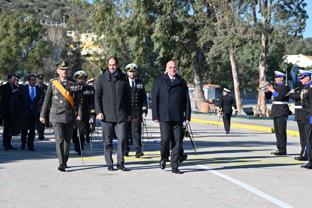 Ο Υπουργός Εθνικής Άμυνας, Νίκος Δένδιας, συνοδευόμενος από τον Υφυπουργό Εθνικής Άμυνας, Ιωάννη Κεφαλογιάννη, παρέστη σήμερα, Τρίτη 23 Ιανουαρίου 2024, στην τελετή παράδοσης – παραλαβής καθηκόντων Αρχηγού Στόλου, μεταξύ του Αρχηγού ΓΕΝ Αντιναυάρχου Δημήτριου – Ελευθέριου Κατάρα ΠΝ και του Αντιναυάρχου Πολυχρόνη Κουλούρη ΠΝ.