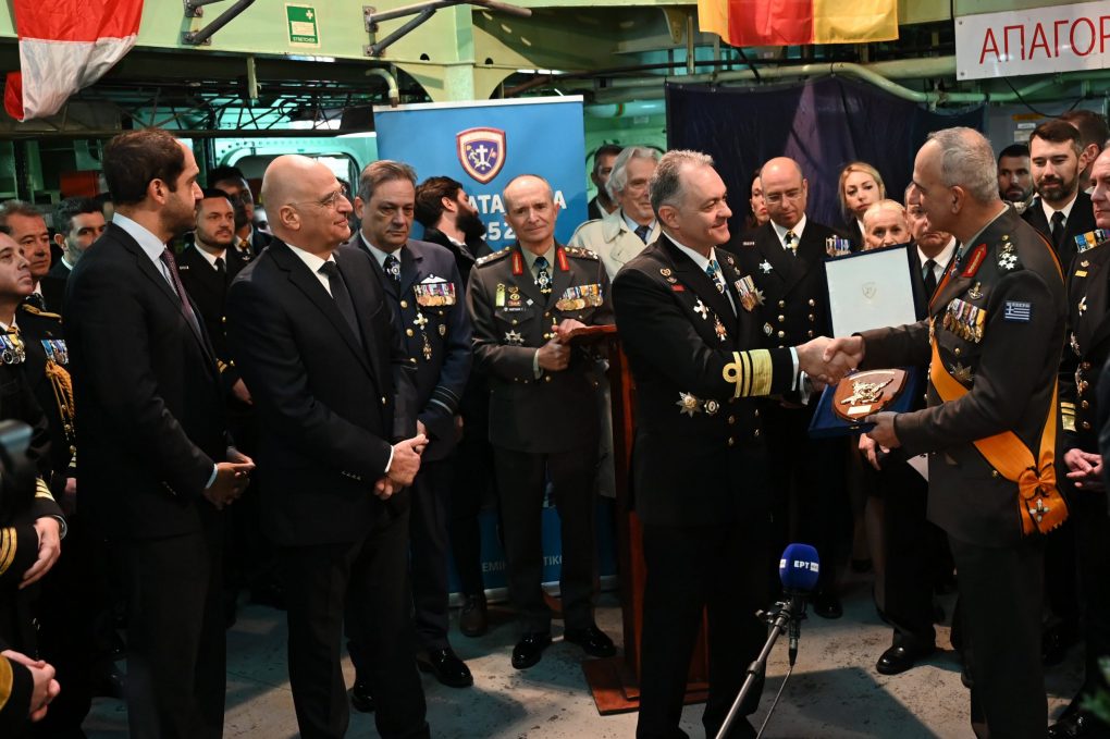 Κατά την επίδοση αναμνηστικού δώρου στον Αρχηγό ΓΕΝ και παραδίδοντα Αρχηγό Στόλου, στην τελετή που έγινε στη Φρεγάτα «Ύδρα», ο κ. Δένδιας ανέφερε: