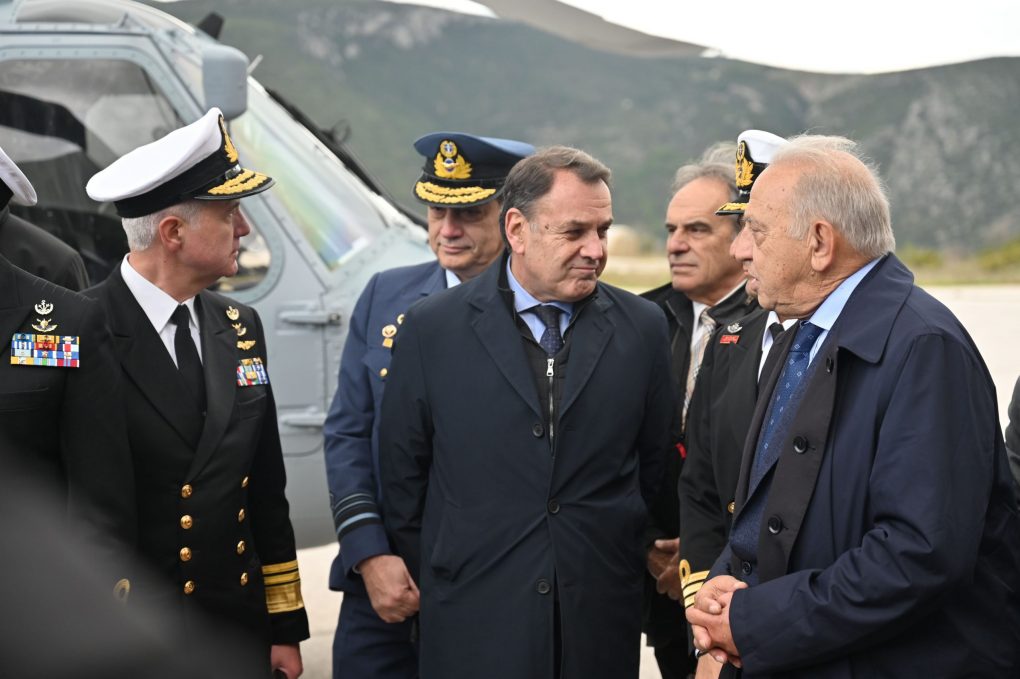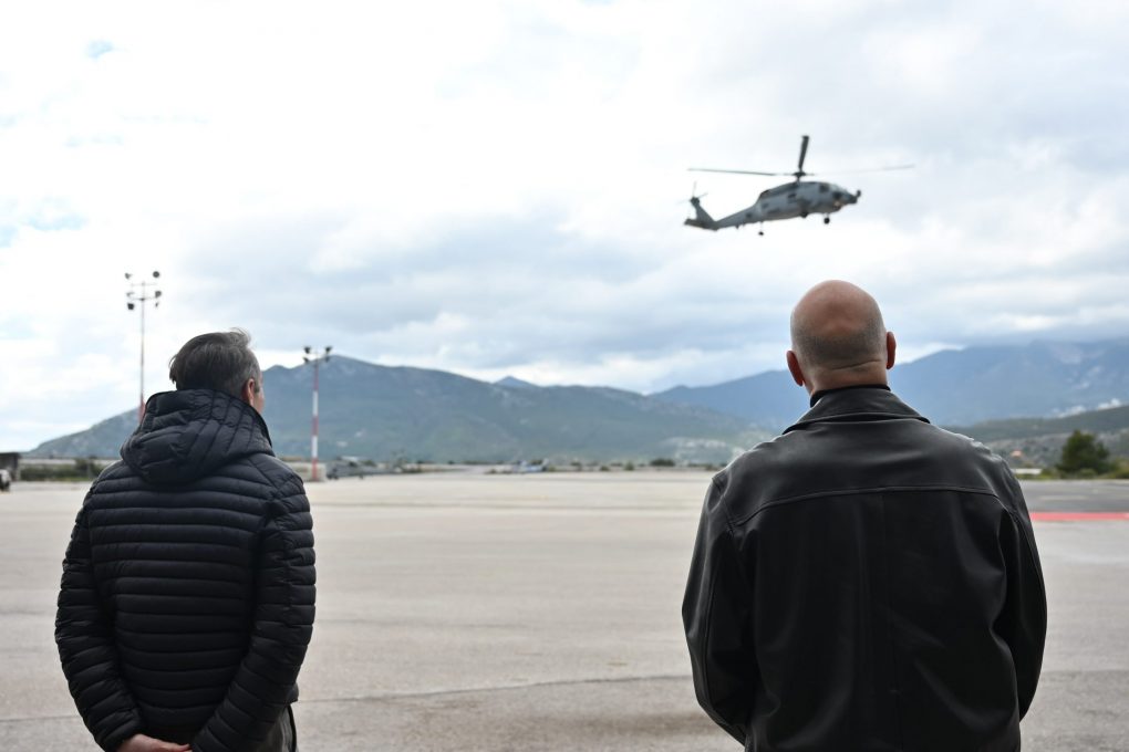 Στην συνέχεια ο Πρωθυπουργός Κυριάκος Μητσοτάκης με τον Υπουργό Εθνικής Άμυνας Νίκο Δένδια, επιβιβάστηκαν στο νεοαποκτηθέν MH-60 ROMEO και πέταξαν πάνω από τον Ευβοϊκό κόλπο.