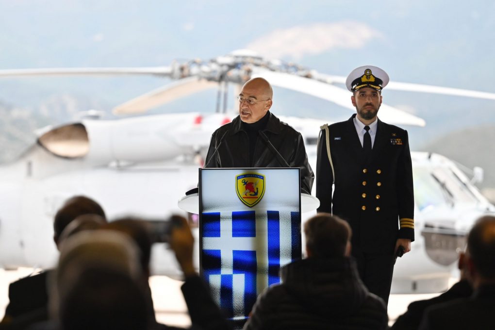 «Κύριε Πρόεδρε, κύριε εκπρόσωπε του Προέδρου της Βουλής, κύριε Υφυπουργέ, κύριε Γενικέ Γραμματέα, κύριε Αρχηγέ του Γενικού Επιτελείου Εθνικής Άμυνας, κύριοι Αρχηγοί, κύριε Πρέσβη των Ηνωμένων Πολιτειών, κύριες Δήμαρχε, κύριε εκπρόσωπε της κατασκευάστριας εταιρείας, αγαπητοί κύριοι συνάδελφοι, εκλεκτοί προσκεκλημένοι χαίρομαι ιδιαίτερα σήμερα που βρίσκομαι στη Βάση Ελικοπτέρων του Πολεμικού μας Ναυτικού στην τελετή παραλαβής των νέων μας ελικοπτέρων.