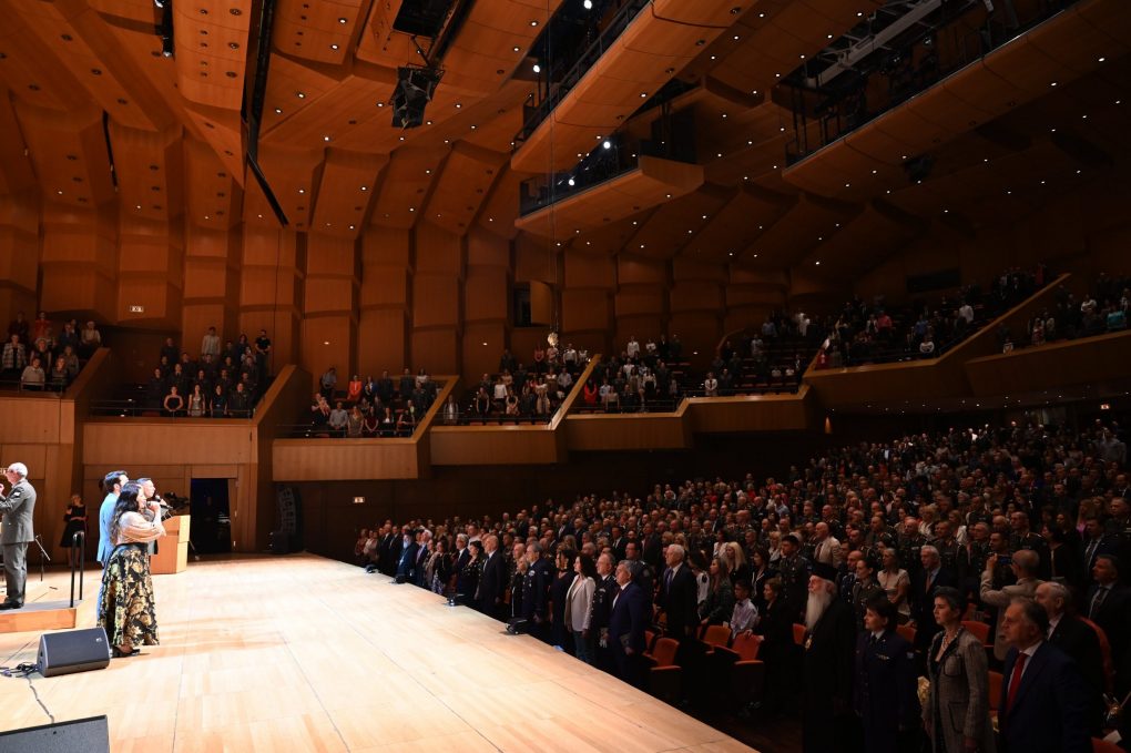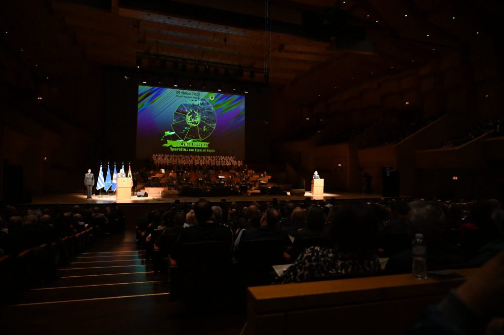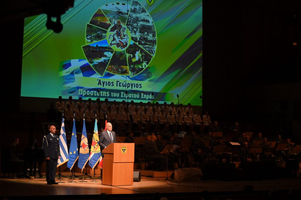 Αποτελεί για μένα ιδιαίτερη χαρά και τιμή να ευρίσκομαι απόψε εδώ στο Μέγαρο Μουσικής, στην επίσημη εορτή της μνήμης του Αγίου Γεωργίου, Προστάτη του Στρατού και κυρίαρχης μορφής της θρησκευτικής μας πίστης και της λαογραφικής μας παράδοσης.