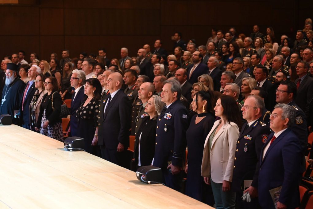 Ο Υπουργός Εθνικής Άμυνας κ. Νίκος Δένδιας, παρέστη σήμερα, Πέμπτη 9 Μαΐου 2024, εκπροσωπώντας τον Πρωθυπουργό Κυριάκο Μητσοτάκη, στην τελετή εορτασμού του Προστάτη του Στρατού Ξηράς Μεγαλομάρτυρα Αγίου Γεωργίου, που πραγματοποιήθηκε στο Μέγαρο Μουσικής Αθηνών, παρουσία του Αρχηγού ΓΕΕΘΑ Στρατηγού Δημήτριου Χούπη, του Αρχηγού ΓΕΣ Αντιστράτηγου Γεώργιου Κωστίδη, του Αρχηγού ΓΕΑ Αντιπτέραρχου (Ι) Δημοσθένη Γρηγοριάδη, του Εκπροσώπου του Αρχηγού ΓΕΝ, Υπαρχηγού ΓΕΝ, Υποναύαρχου Γεώργιου Φλώρου ΠΝ, και άλλων ανώτατων και ανώτερων αξιωματικών των Ενόπλων Δυνάμεων.