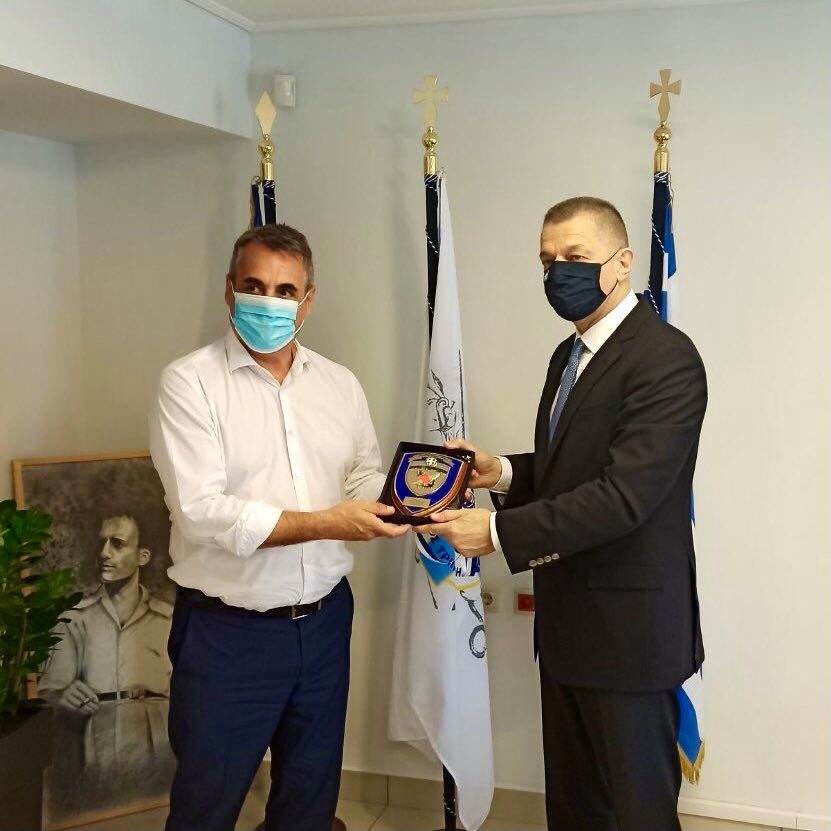 Μετά την ορκωμοσία των Σμηνιτών, ο Υφυπουργός Εθνικής Άμυνας επισκέφθηκε το Δημαρχείο Τρίπολης, όπου συναντήθηκε με τον Δήμαρχο Κώστα Τζιούμη.