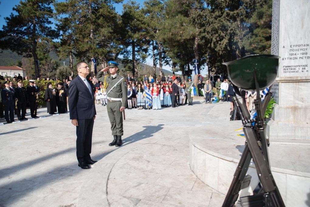 Ο Υφυπουργός Εθνικής Άμυνας παρακολούθησε τη Θεία Δοξολογία στον Ιερό Ναό του Αγίου Δημητρίου, κατέθεσε στεφάνι μετά την τέλεση επιμνημόσυνης δέησης στο χώρο του Ηρώου, ενώ οι εκδηλώσεις ολοκληρώθηκαν με την παρέλαση πολιτικών και στρατιωτικών τμημάτων.