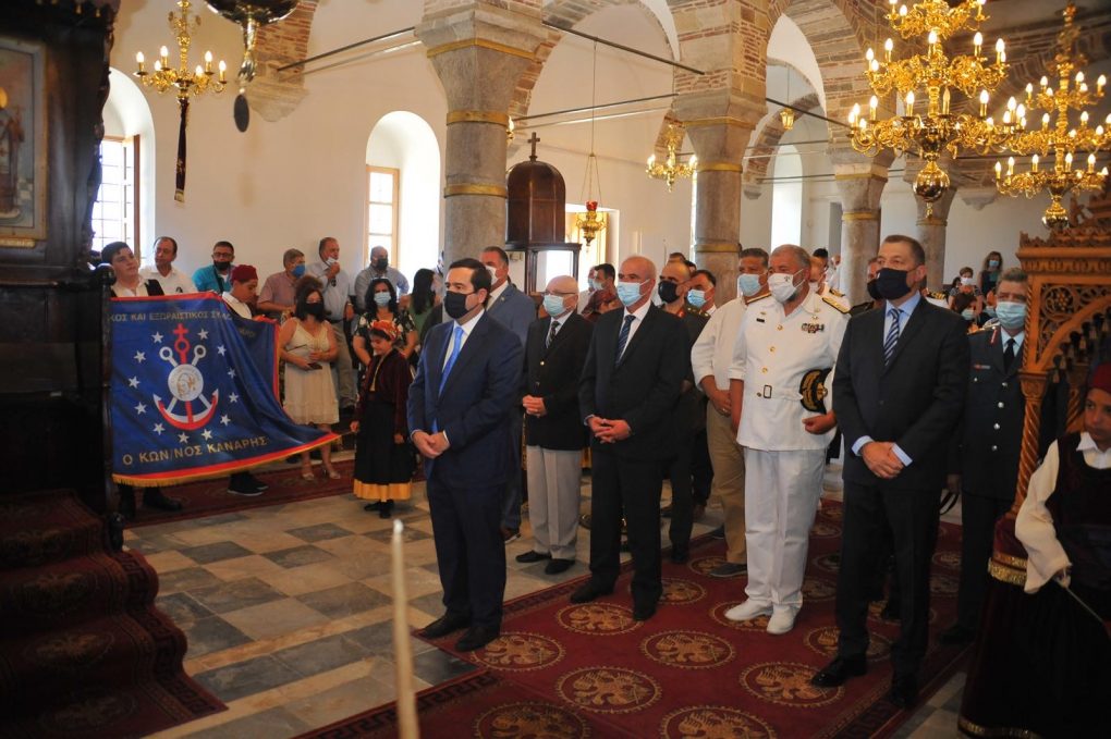 Ο Υφυπουργός Εθνικής Άμυνας παρακολούθησε την επίσημη Δοξολογία στον Ιερό Ναό Αγίου Νικολάου, χοροστατούντος του Σεβασμιωτάτου Μητροπολίτη Χίου, Ψαρών & Οινουσσών κ.κ. Μάρκου. Παρέστη στο Τρισάγιο, στον κήπο που υπήρχε η οικία του Κωνσταντίνου Κανάρη και κατέθεσε στεφάνι στο Μνημείο Πεσόντων προς τιμήν των Αγωνιστών της Ελληνικής Επανάστασης, στην Πλατεία Ηρώων Ολοκαυτώματος.