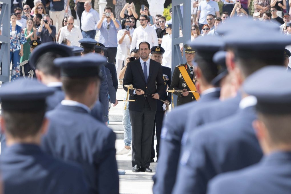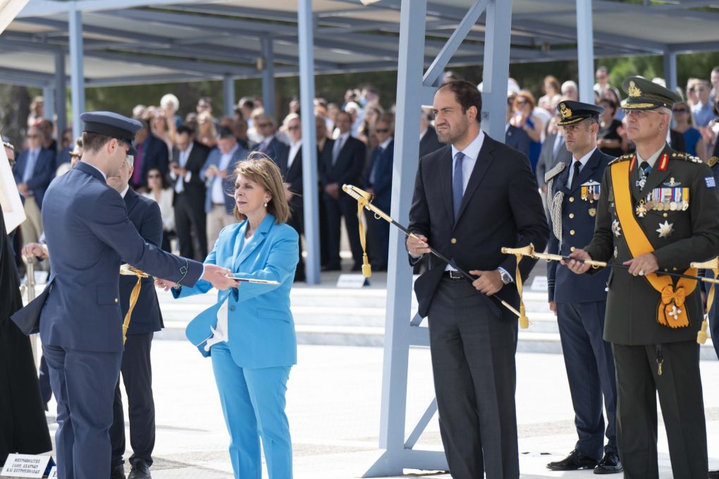 «Από την εμβληματική Σχολή Ικάρων, θα ήθελα να εκφράσω τα θερμά μου συγχαρητήρια στους νέους Ανθυποσμηναγούς για την επιτυχή ολοκλήρωση των σπουδών τους και να τους ευχηθώ καλή σταδιοδρομία. Ύστερα από τέσσερα απαιτητικά χρόνια σπουδών έχουν εξασφαλίσει τις προϋποθέσεις, ώστε να εξελιχθούν σε επιτυχημένους ιπτάμενους ή μηχανικούς, επιτελείς, ηγέτες και επιστήμονες. Να αξιοποιήσουν την αλματώδη ανάπτυξη της τεχνολογίας, καταρτίζοντας και εφαρμόζοντας νέα αμυντικά δόγματα που απορρέουν από τα διδάγματα των σημερινών πεδίων των μαχών. Στη διάρκεια της επαγγελματικής τους πορείας θα τους δοθεί η ευκαιρία να αναβαθμίσουν περαιτέρω το γνωστικό τους υπόβαθρο, πραγματοποιώντας προπτυχιακές και μεταπτυχιακές σπουδές, ενώ θα έχουν τη δυνατότητα φοίτησης σε στρατιωτικές σχολές, ακαδημίες και κολλέγια του εξωτερικού, αποκομίζοντας γνώση, διευρύνοντας την κριτική τους ικανότητα και διαμορφώνοντας στρατηγική αντίληψη. Ως Υπουργείο Εθνικής Άμυνας θα είμαστε πάντοτε δίπλα στους Αεροπόρους μας με κάθε δυνατό τρόπο, για να μπορούν να εκπληρώνουν απερίσπαστοι την υψηλή αποστολή της προάσπισης της εδαφικής ακεραιότητας και των δικαίων της Πατρίδας μας. »