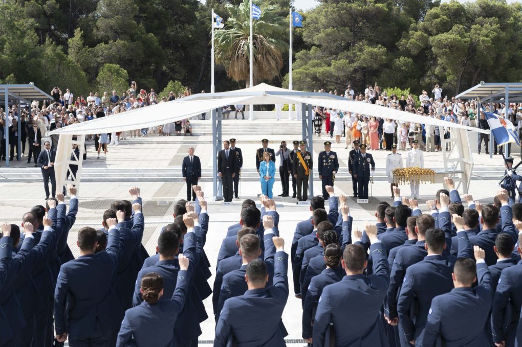 Ο Υφυπουργός Εθνικής Άμυνας κ. Γιάννης Κεφαλογιάννης παρέστη σήμερα, Τετάρτη 26 Ιουνίου 2024, ως εκπρόσωπος του Πρόεδρου της Ελληνικής Κυβέρνησης, στην τελετή Ορκωμοσίας των Νέων Ανθυποσμηναγών Τάξεως 2024, που διεξήχθη στις εγκαταστάσεις της Σχολής Ικάρων στο Τατόι. Την τελετή τίμησε με την παρουσία της η Α.Ε. η Προέδρος της Ελληνικής Δημοκρατίας κ. Αικατερίνη Σακελλαροπούλου, που επέδωσε και τα ξίφη στους ορκισθέντες Ανθυποσμηναγούς.