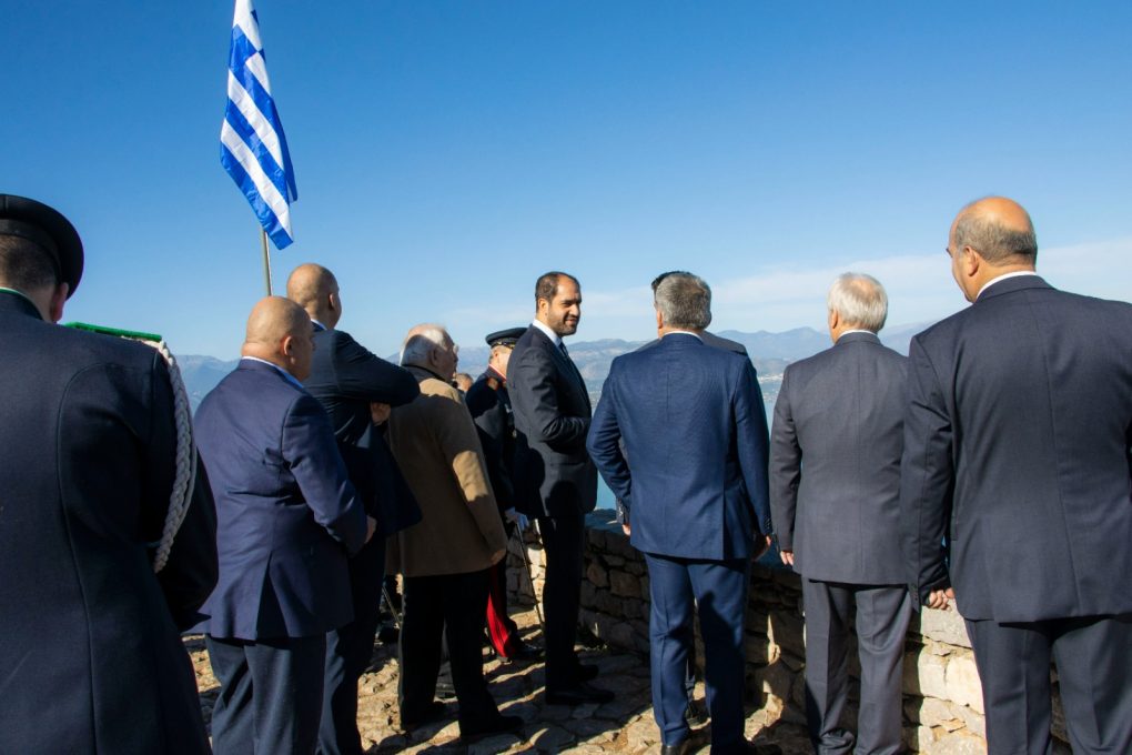 Ο Υφυπουργός Εθνικής Άμυνας κ. Ιωάννης Κεφαλογιάννης, παρέστη σήμερα Πέμπτη 30 Νοεμβρίου 2023, ως εκπρόσωπος του Προέδρου της Ελληνικής Κυβέρνησης στις επετειακές εκδηλώσεις για τα 201 χρόνια εορτασμού της Άλωσης του Φρουρίου του Παλαμηδίου και της Απελευθέρωσης της πόλης του Ναυπλίου. Στο τελετουργικό παρευρέθηκαν επίσης οι Βουλευτές Αργολίδος Ιωάννης Ανδριανός και Ανδρέας Πουλάς, ο Δήμαρχος Ναυπλιέων Δημήτρης Κωστούρος, o Διοικητής ΔΙΚΕ Υποστράτηγος Ιωάννης Δημητρέλλος, o Διοικητής ΣΜΧ Ταξίαρχος Ιωάννης Οικονόμου, o Διοικητής ΥΔΥΠ Ναυπλίου Αντισυνταγματάρχης (ΜΧ) Ιωάννης Βάρσος, εκπαιδευτικοί, εκπρόσωποι Συλλόγων, Πολιτιστικών Φορέων, καθώς και πλήθος κόσμου.