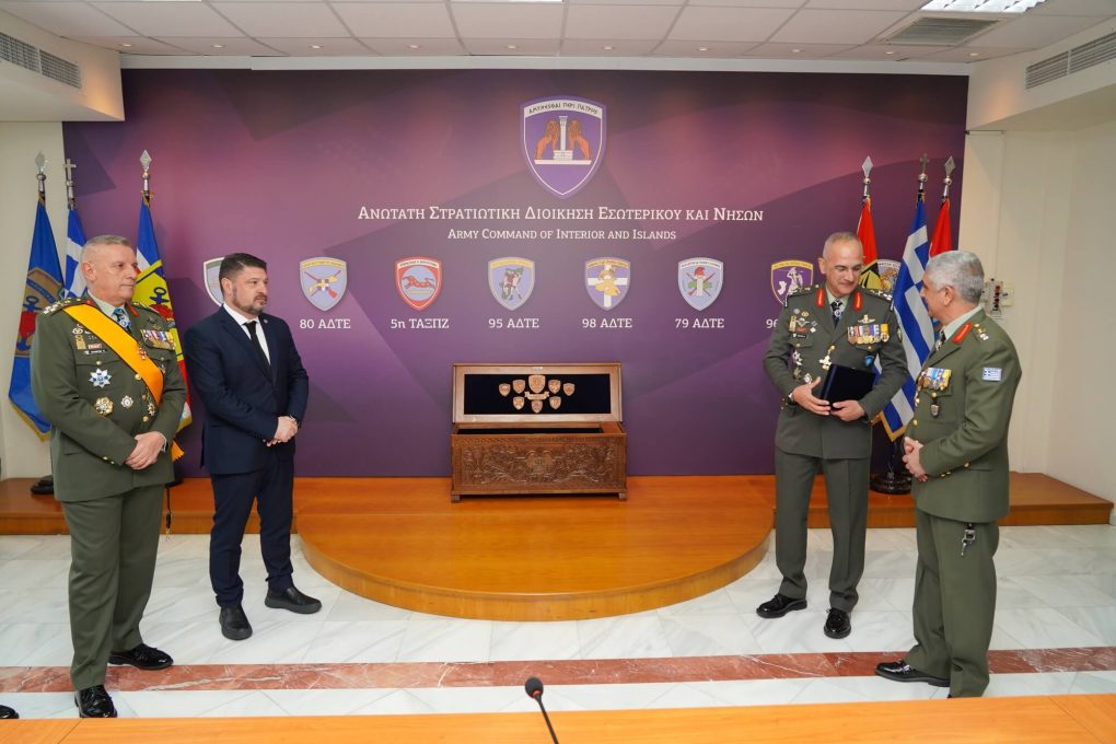 Ο Υφυπουργός Εθνικής Άμυνας κ. Νικόλαος Χαρδαλιάς, συνοδευόμενος από τον Αρχηγό ΓΕΕΘΑ Στρατηγό Κωνσταντίνο Φλώρο, παρευρέθηκε σήμερα, Παρασκευή 27 Ιανουαρίου 2023 στην τελετή παράδοσης – παραλαβής της Διοίκησης της Ανώτατης Στρατιωτικής Διοίκησης Εσωτερικού & Νήσων (ΑΣΔΕΝ), από τον απερχόμενο Αντιστράτηγο Δημήτριο Χούπη στον Αντιστράτηγο Σωτήριο Κωστάκογλου, που πραγματοποιήθηκε στο Στρατόπεδο «ΣΑΚΕΤΤΑ Β΄», στην Αθήνα.