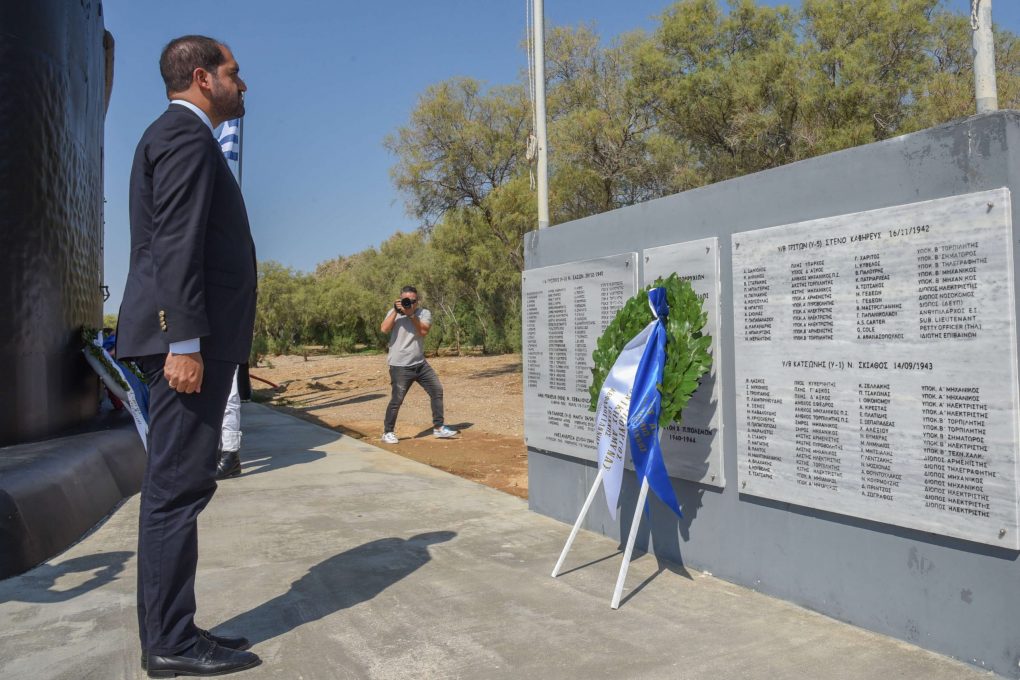 Ο κ. Κεφαλογιάννης απέτισε φόρο τιμής καταθέτοντας δάφνινο στεφάνι στο μνημείο των απολεσθέντων, κατά τη διάρκεια του Β’ Παγκοσμίου Πολέμου, εν δράσει μελών πληρώματος των υποβρυχίων «ΠΡΩΤΕΥΣ Υ-3», «ΓΛΑΥΚΟΣ Υ-6», «ΤΡΙΤΩΝ Υ-5» και «ΚΑΤΣΩΝΗΣ Υ-1» καθώς και των κατά τη διάρκεια ειρήνης θανόντων συναδέλφων τους. Στο μνημόσυνο παρέστησαν επίσης ο Αρχηγός ΓΕΝ Αντιναύαρχος Ιωάννης Δρυμούσης ΠΝ, ο Βουλευτής Νοτίου Τομέα Β3 Αθηνών Διονύσης Χατζηδάκης, ο Δήμαρχος Παλαιού Φαλήρου Γιάννης Φωστηρόπουλος, ο Πρόεδρος του Ελληνικού Συνδέσμου Υποβρυχίων Παναγιώτης Ραδίτσας και μέλη του Συνδέσμου.