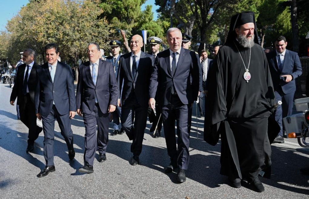 Ο Υπουργός Εθνικής Άμυνας Νίκος Δένδιας εκπροσώπησε σήμερα, Δευτέρα 28 Οκτωβρίου 2024, την Κυβέρνηση, στην παρέλαση στρατιωτικών και πολιτικών τμημάτων στη Θεσσαλονίκη για την Εθνική Επέτειο της 28ης Οκτωβρίου 1940, ενώπιον της Α. Ε. της Προέδρου της Δημοκρατίας, Κατερίνας Σακελλαροπούλου.