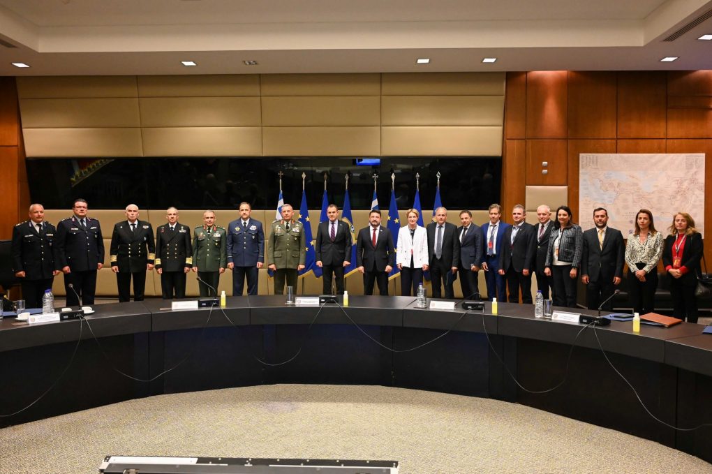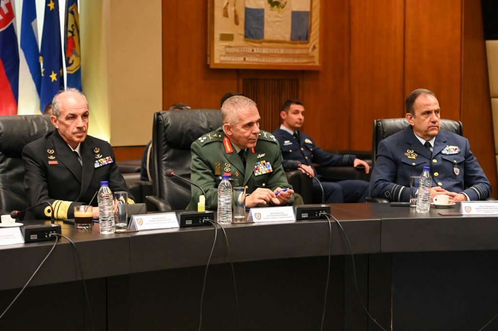 Ο Υπουργός Εθνικής Αμύνης κ. Νικόλαος Παναγιωτόπουλος, ο Υφυπουργός Εθνικής Αμύνης κ. Νικόλαος Χαρδαλιάς και ο Αρχηγός ΓΕΕΘΑ Στρατηγός Κωνσταντίνος Φλώρος παρέστησαν σήμερα, Πέμπτη 20 Απριλίου 2023, στην παρουσίαση του Οδικού Χάρτη για τον περιορισμό των επιπτώσεων και την προσαρμογή των Ενόπλων Δυνάμεων στην Κλιματική Αλλαγή, που πραγματοποιήθηκε στην Αίθουσα Συνεδριάσεων «Ιωάννης Καποδίστριας» του ΥΠΕΘΑ.